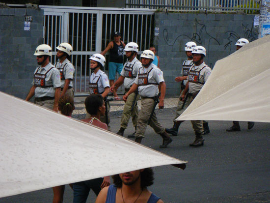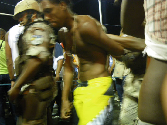 Auf der Straße ging’s etwas chaotisch zu. Ich war froh, dass wir bei Regenschauern in die überdachte Camarote flüchten konnten. Ein paar Schlägereien brachen aus. Die Polzei griff hart mit Gummiknüppel durch. Das sah schon extrem aus. Manche wollen einfach mit allen kämpfen und kriegen dann eins auf die Nuss.