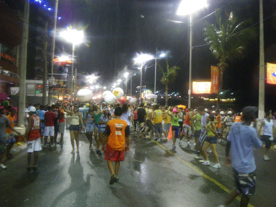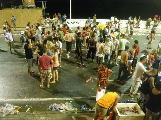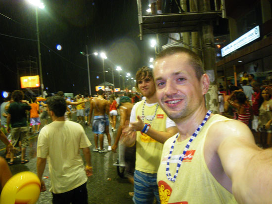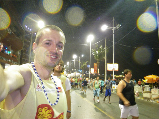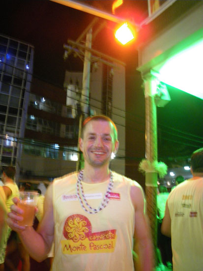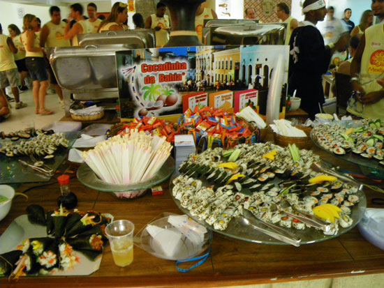 Da gingen wir dann abends hin und sahen die ganzen Blocos vorbeiziehen. Ein paar Leute ausm Hoste waren auch dort. Essen und Trinken war inbegriffen. Das Essen war super mit Sushi und allerlei. Die Drinks waren auch OK, mehr auf Vodka gemixt, statt Rum. Ich hielt mich gut zurück, damit ich alles genießen kann.