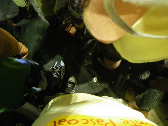 Ein paar Mal mischten wir uns auch unter die Leute unten auf der Straße. Da wurde ein Photo aufgenommen und die Nummer des Armbands registriert.