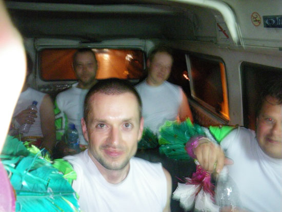 Für mich war es etwas zu schnell vorbei. Viele hatten aber schon genug. Es ist irre, welcher Aufwand für so eine Parade betrieben wurde. Etwas schweren Herzens trennte ich mich vom Großteil des Kostüms. PitscWir nahmen einen kleinen VW Bus, der eigentlich R$50 kosten sollte. Die gab ich, dann wollte er doch R$110. Ich vermisste auch ein paar große Scheine, die vielleicht rausgefallen waren aber so genau weiß ich das alles nicht. Geld ist weg und die Erfahrung der Sambaparade war schon gut. Die Brasilianer wissen schon, wie man eine Party macht.