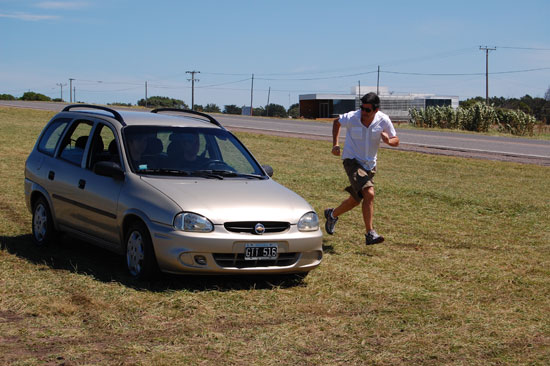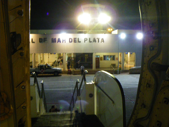 Noch eine kleine Übungsrunde mit der Handschaltung durch die Innenstadt. Ich fuhr nicht aber wir kamen wieer mitd em Stau zurück nach Mar del Plata, wobei es schon um 5 wurde. Einige hatten Flugtickets für 19:00 und machten schnell los. Ein anderer Amerikaner hatte kein Ticket. Ich hatte den Fehler gemacht, kein Roun-Trip Ticket zu kaufen und saß nun auch da. Die Busse waren alle voll bis morgen. Nach einem kleinen Nickerchen entschieden wir uns, dann doch zu fliegen – zuerst aber das Auto abzugeben. Das klappte gerade so noch vor 20:30 – ich zahlte die AR$ 295 (€56) in Cash.