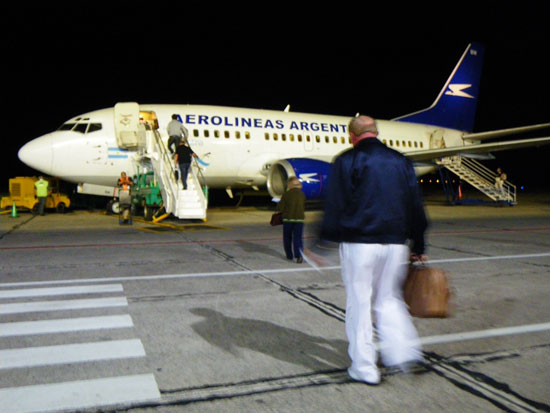 Wir fuhren mit dem Taxi zum Flughafen. Gleich dort am Schalter kauften wir die Tickets. Sie wollten nur eine Kreditkarte durchziehen, wodurch ich dem Amerikaner nochmal AR$ 432 schulde. Ich gab fix meinen Rucksack ab und war kaum 5 Minuten später in der Security Schlange. Der Flieger hatte leicht Verspätung – das war noch der für 21:00. Kaum jemals war ich so schnell in einem Flugzeug, alles problemlos.