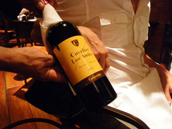 Mein Rucksack kam als erster an. Mit dem Taxi fuhren wir direkt zu einem exklusivem Restaurant. Die Preise waren für argentinische Verhältnisse doch sehr hoch. Edler Wein und ein 500g Steak schmeckten super. Die Crème brûlée als Dessert war die zweite nach St. Tropez. Ich war sehr zufrieden, andere hatten schon besseres gegessen. Die Rechnung kam auf ca. AR$300 pro Person, was zwar für Argentinien teuer ist aber für EU Verhältnisse mit so einer Exklusivität ein Klacks.