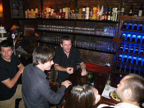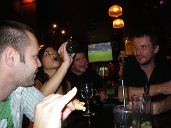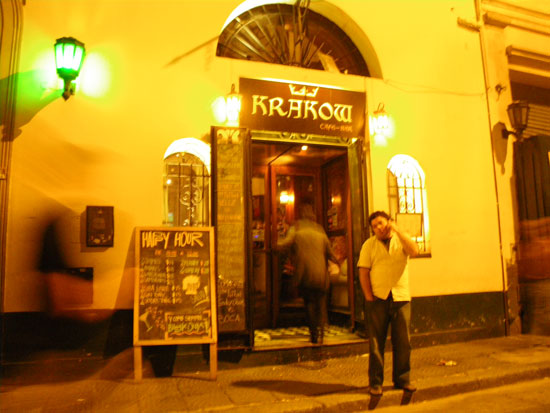 Wir fuhren mit dem Taxi wieder zum Hotel. Ich chillte etwas, denn schon 19:30 sollten wir uns in der Krakow Bar zu einem kleinen Networking Event treffen. Erst nach 8 ging ich mit meinem Zimmergenossen hin, nahmen dann wieder ein Taxi. Dort waren eine ganze Menge Leute aus der argentinischen Tech-Scene. Einige junge Leute haben Megasites aufgebaut, von denen ich vorher nie was hörte. Jeder weiß Bescheid, wie schlecht es der Spieleindustrie geht. Heutzutage sind Superscaling Applications oder irgendwas im Social Gaming / Web Gaming Bereich viel interessanter. Einer wird in 3 Wochen aufgekauft, das war dann nichts mit günstigen Entwicklern da. Facebook, iPhone – das muss ich langsam auch mal machen.