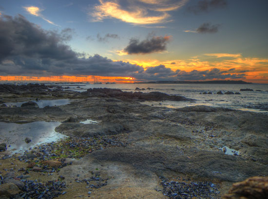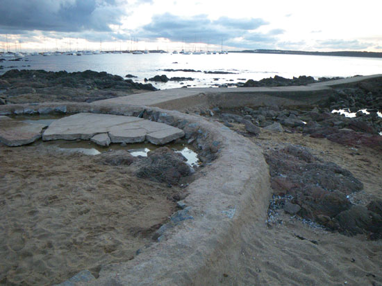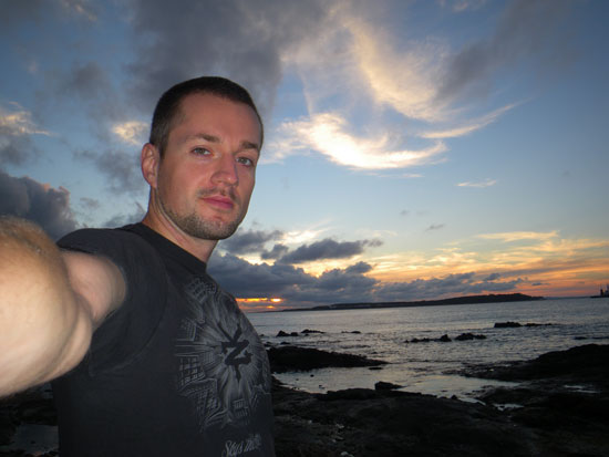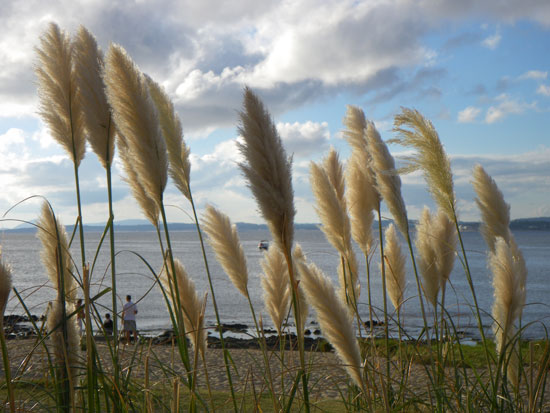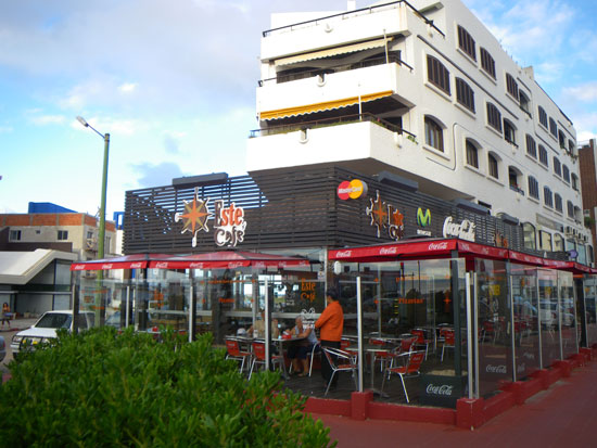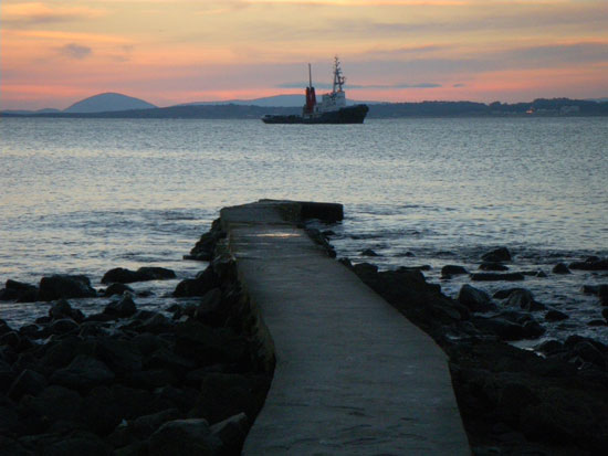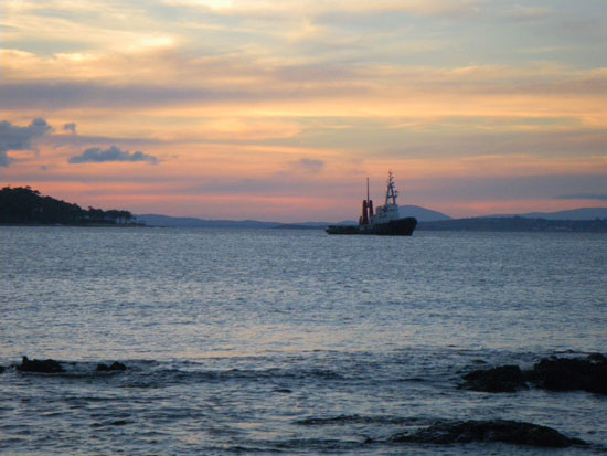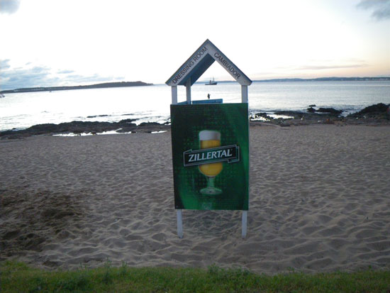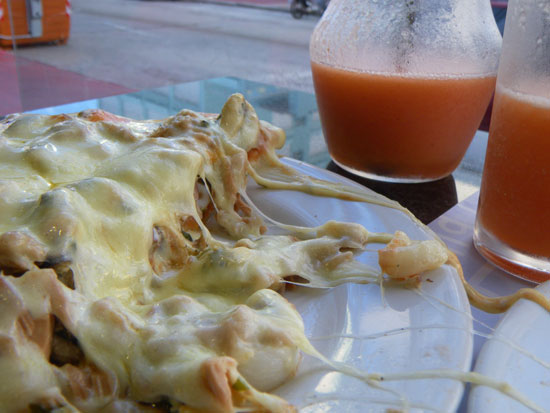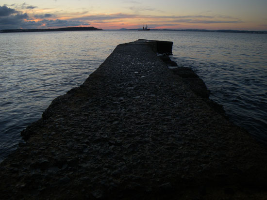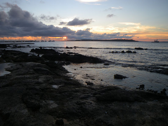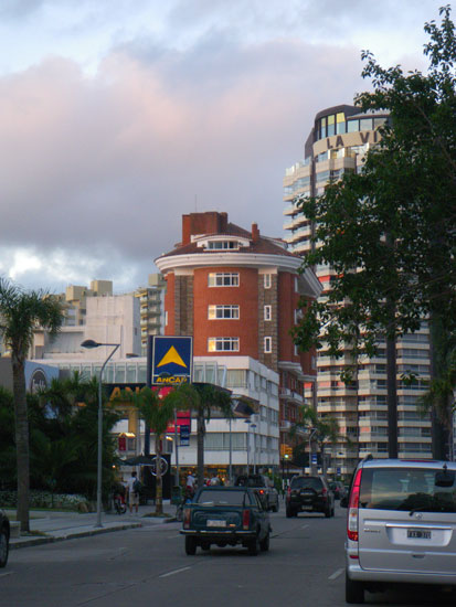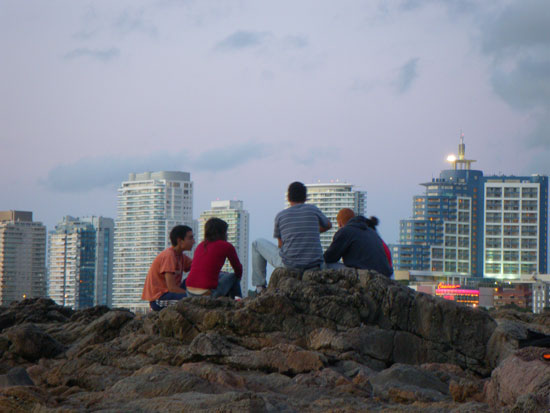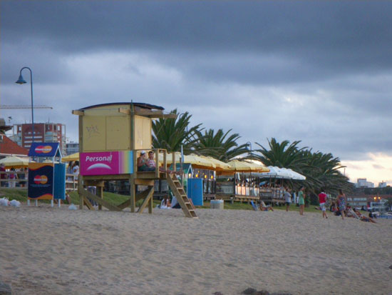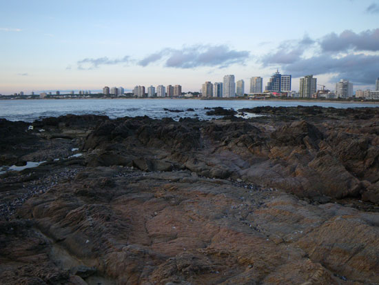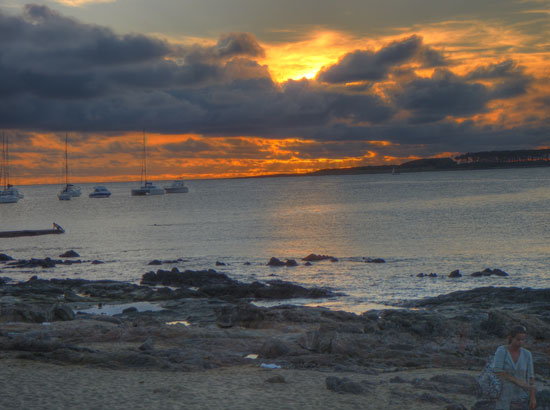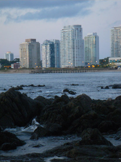 Ich überlegte mir, noch einen Tag länger in Punta del Este zu bleiben. Erst mal hatte ich Frühstück, Mittag und Abendessen in einem. Eine Pizza mit Meeresfrüchten udn ein Tuti Fruti wieder mal. Der Saft kostete mit 180 Pesos, so viel, wie eine Busfahrt in die nächste Stadt. Die Stadt hier ist nicht billig. Die Pizza war gut, der Saft auch und ich war voll zufrieden. So konnte ich den Sonnenuntergang bewundern, auch wenn sich die Sonne etwas zu sehr hinter Wolken versteckte.