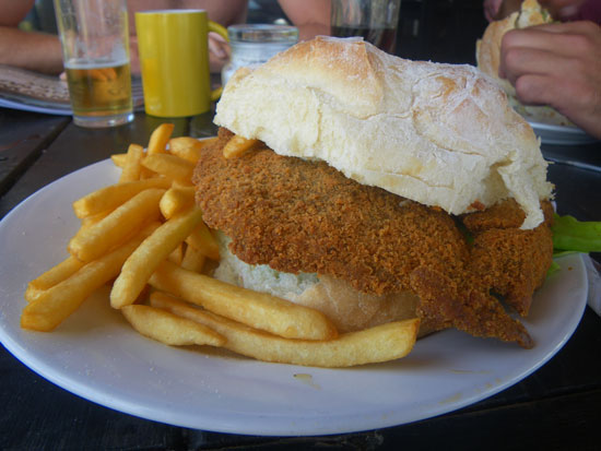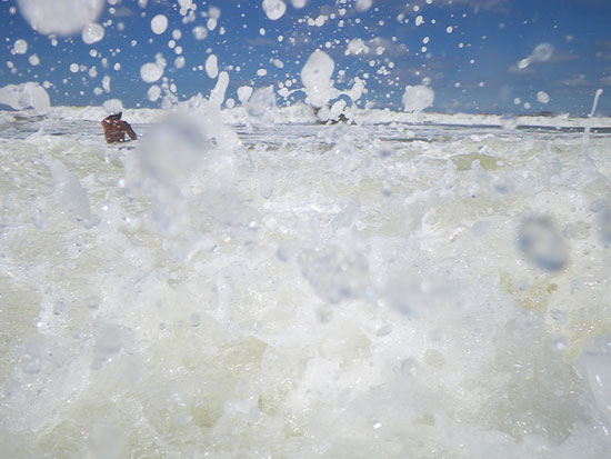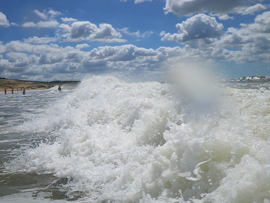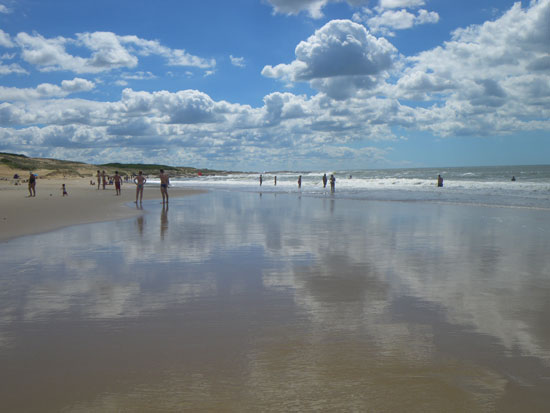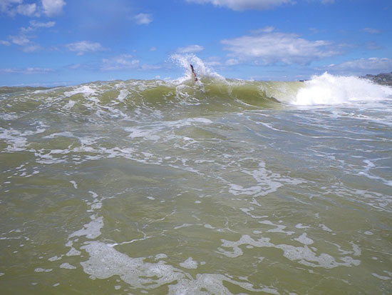 So hatte ich zum Mittag eine riesige Milanesa und ging dann nochmal zum Strand, nochmal baden. Die Wellen sind nicht zu hoch. Es gibt permanentes Rauschen, weil mehrere Wellen gleichzeitig brechen.