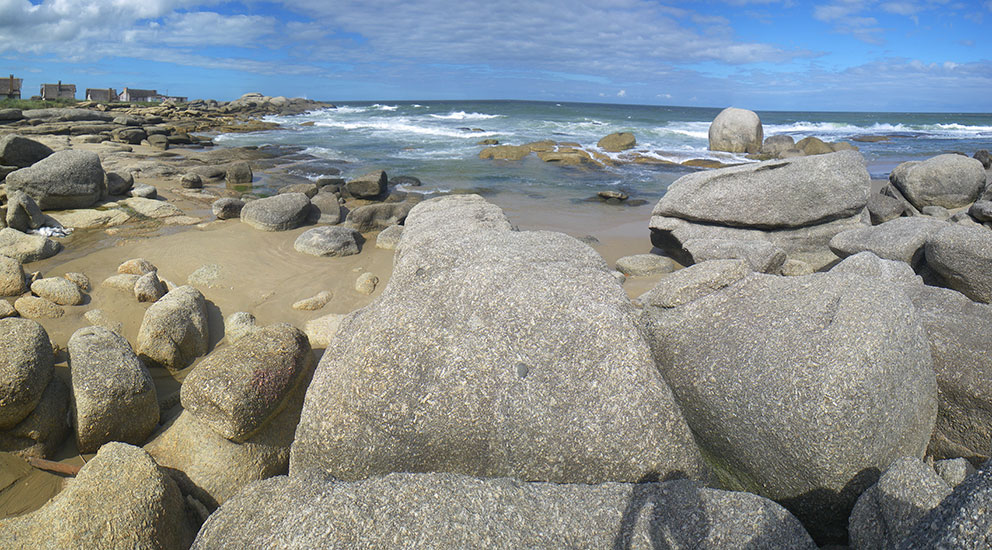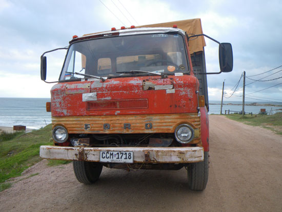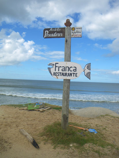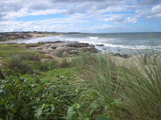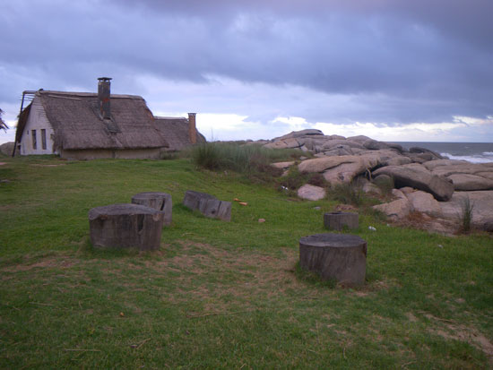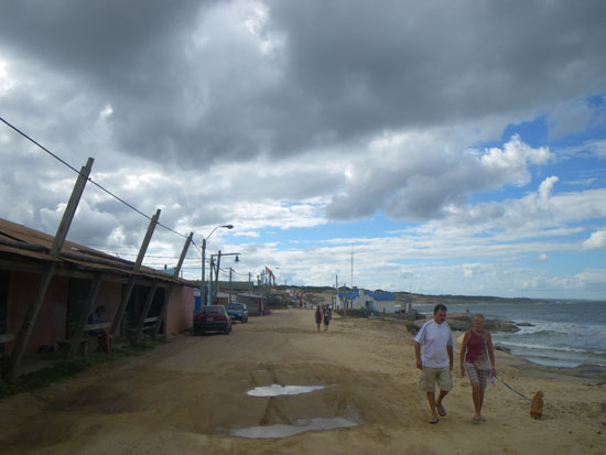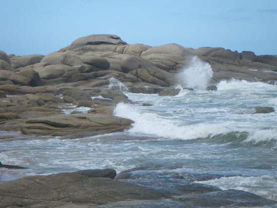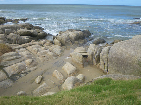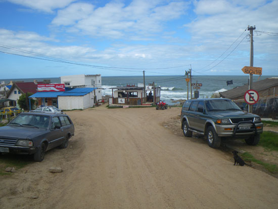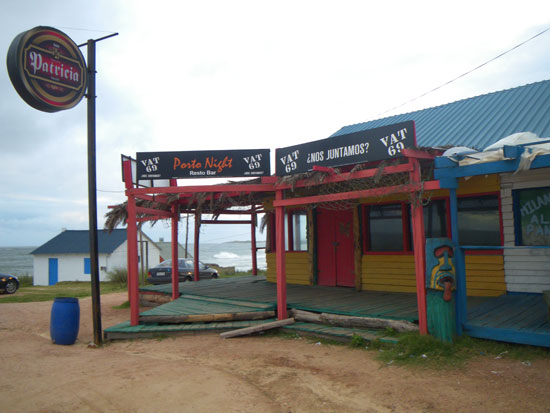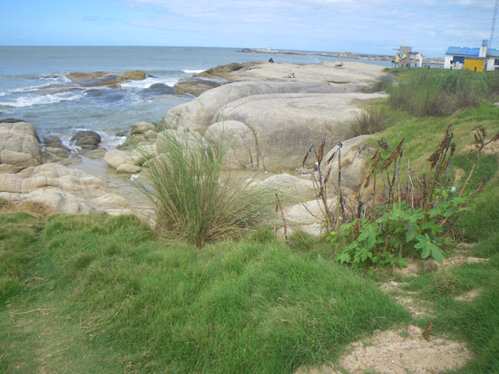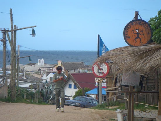 In der Stadt holte ich mein Busticket für morgen 13:50 zurück nach Montevideo – 298 Pesos. Ich hatte das gleiche Hotel gebucht. Da saß ich mit etwas Limo auf ’nem Stein, schaute aufs Meer.