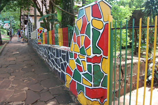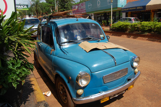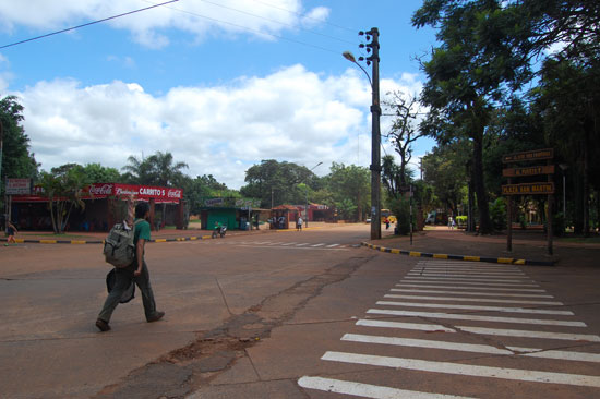 Als ich nämlich zum Busbahnhof ging, wollte ich natürlich einen Bus nehmen. Die Busse nach Brasilien waren aber jetzt „no mas“. Zurück ins Hostel, Taxi gerufen und dann per Taxi über die Grenze. Drive-in Grenzübergänge auf beiden Seiten ohne irgendwelche Probleme. Der Taxifahrer hatte nur Schwierigkeiten mein Hostel „Katharina House“ zu finden und drehte mehrfach Runden. Der Preis war wohl fix – A$80 – gab AR$100, kaum €20.