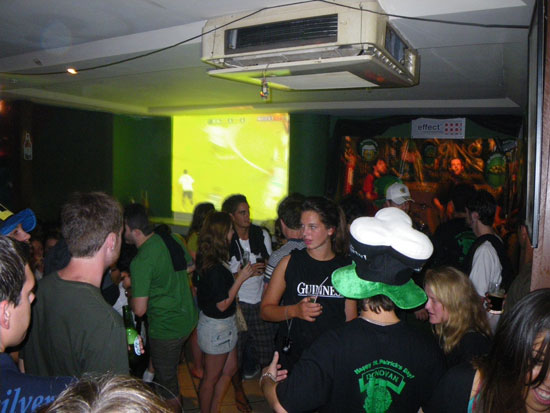 Die Party zum St. Patrick’s day ging nicht so richtig los. Ein paar Live-Bands spielten Rock, es ging… Kaum jemand machte sich die Mühe, grün anzuziehen. Ich trank nur wenig, ein paar brasilianische Typen sprachen mich an. Naja, das hatte ich mir etwas anderes vorgestellt aber OK .. war ja auch müde. Ich gab 3 Shots der 5 Shots aus – Bier, Guarana Softdrink wieder – alles easy. Die Bil kam auf knapp 40 Reais, OK.