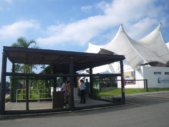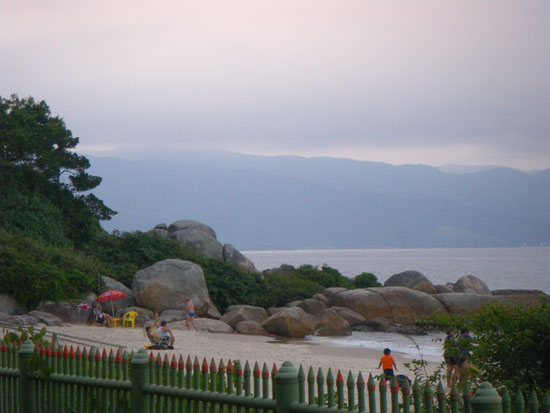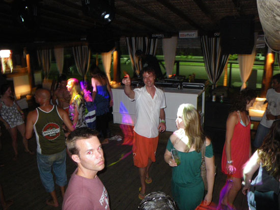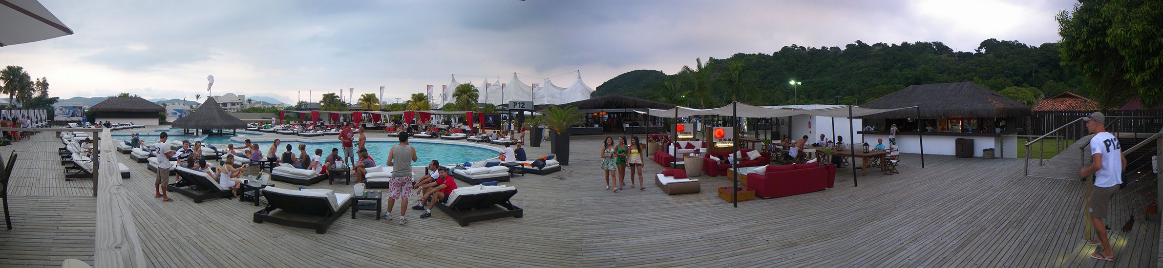 Der Bus mit ’nem Haufen Leuten aus dem anderen Hostel kam, wir fuhren wieder ans Nordende von Floripa – wieder am Pacha vorbei. Dann dort schien das P12 ziemlich leer zu sein…und so blieb es dann auch. Wir waren quasi fast die einzigen dort. Nur ein paar Grüppchen Brasileiros vergnügten sich unter dem bedecktem Himmel. Das sollte ein super Party werden, war’s aber nicht.