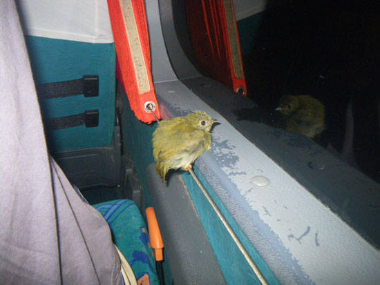 Auf dem Parkplatz warteten wir 30′ – brasilianische Zeit eben. Das lustigste passierte dann noch im Bus. Ein kleiner Vogel flatterte herum und saß beim Typen vor mir am Fenster – offensichtlich stark irritiert.