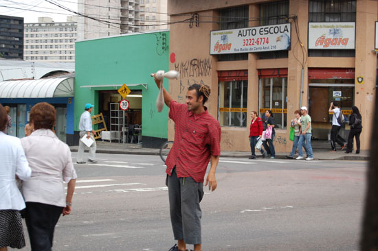 Ich war doch etwas fertig. Eine Bekannte aus Punte del Diablo holte mich im Hotel ab. Wir gingen zu einem Theater, trafen zwei ihrere Freunde und schauten uns zum Curitiba Theater Festival ein Drama an. Ich verstand nur ein klitzewenig, fand das aber auch interessant. Es gibt eine große Menge an Veranstaltungen. Wieder ein Grund, endlich Portugiesisch zu lernen. Ich hatte inwzsichen einen Megahunger. In einem Café gingen wir was essen. Blubberwein, einen guten Saft und ich hatte noch zwei Gerichte, war dann rund und glücklich. Die ganze Rechnung wurde nur durch 4 geteilt, wobei ich das Meiste hatte.