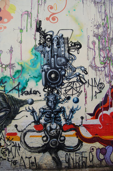 Ich spazierte etwas hier in der Gegend herum, holte mir erst mal was richtiges zu essen. Ein paar Gegenden mit Graffiti wurden empfohlen. Die fand ich erst gar nicht, dann zufällig irgendwelche Hintergassen dann doch. Ganz nett, nichts weltberühmtes. Das Feeling der Gegend ist aber locker. Viele bunte Häuser, alles irgendwie künstlerisch angehaucht.