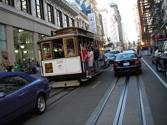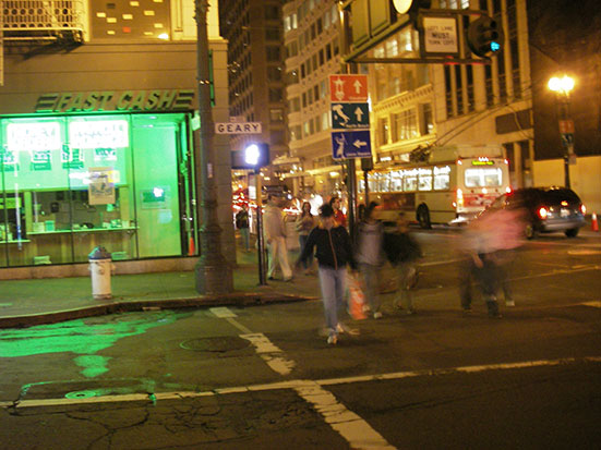 Eine knappe Stunde in der Luft und schon in Oakland. Dann in den AirBART ($2) und dann in den BART ($3.15). Powell ‚raus und dann hoch zur O’Farrell. Da ist Vantaggio Suites, die jedoch wohl nur wochenweise vermieten. Außerdem war ich da schon mal, erinnerte mich aber an viele schäbige Hotels in der Gegend. Das Schwedish House nebenan war verschlossen, also weiter.