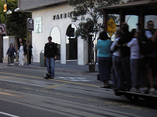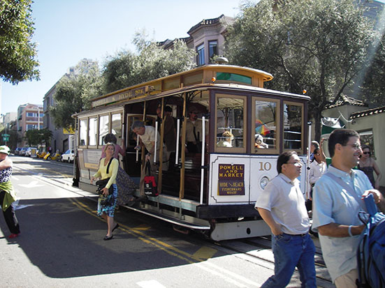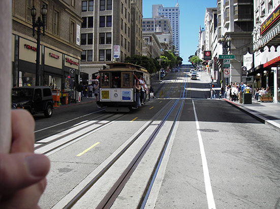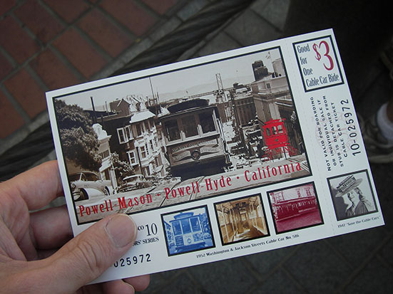 Im Hotel schickte ich die Bilder auf die Website. Dabei gab es einen IP-Adressen-Konflikt. Der Spender des WLAN schaltete es dann aus. Gegen 14:30 kam ich so raus, lief zur Powell und aß erst mal ein Baguette mit Café. Das Mozarella Teil war gut und groß. Ein Ticket zur Cable Car kostete $3. Damit stellte ich mich artig in die Schlange.