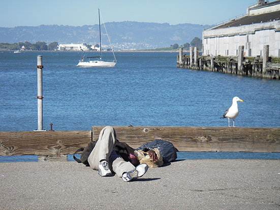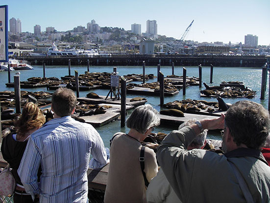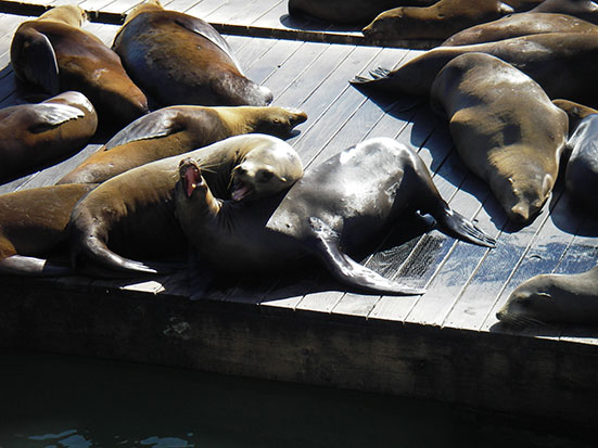 Am Pier 39 lagen wie immer die Seelöwen herum, schliefen und heulten. Man roch die Tiere von weitem. So mancher versuchte das Oink Oink. Ich schoß mehr Photos, wie alle. Von Pier 39 lief ich zurück zur Pier 2-3, wo ich zum Transamerica Building (hohe Pyramide) rüber nach Chinatown schlurfte. Im Prinzip ist das die entgegengesetzte Strecke von September 2003. Jetzt zum Sonntag machten selbst in Chinatown die meisten Läden schon gegn 18:00 zu. Ich hatte dummerweise noch keinen Hunger. Die Dim Sums blieben also liegen. Dann weiter aus Chinatown raus zur Power und schließlich Bush Street. Da schlief ich auch zwei Mal Anfang 2003. Dort kaufte ich mir im „Rite Aid“ ein Eis und was zu trinken. Zurück zur O’Farrel war es nicht mehr weit. Cool, dass ich das alles ohne GPS machte. Sept 2003 hatte ich das noch vorbei. Jetzt konnte mich ungefähr an die Richtung erinnern. Ich fand’s wieder cool. Zum normalen Leben ist San Francisco nicht 100%ig mein Ding, für Besuche oder vielleicht für 1 Jahr wäre es cool.