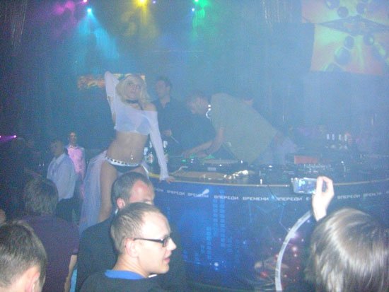 Der „Klub Chassi“ wurde mir als Disco empfohlen. Mit dem Taxi wieder in die Mall, wo wir damals mal ein Firmenessen hatten. 500 Rubel Eintritt sind doch heftig aber der Club ist super. Ein riesiger Videoscreen, Wasserfall-Wand, Laufsteg und sexy Gogos. Ein Typ von The Prodigy legte auf, ab 1:30 kam die Party in Schwung. Die Preise können sich wohl nicht viele leisten udn so würden gut doppelt so viel Leute hier rein passen. Alles locker und nette Leute. Spaß auch ohne Alkohol.