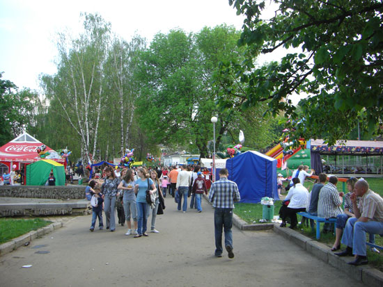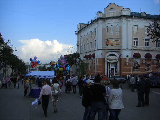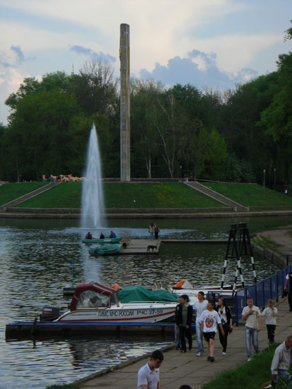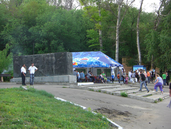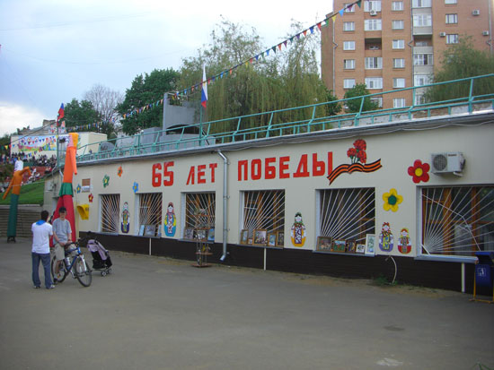 Wieder hoch die Lenin Straße und und nochmal über den Platz, traurige Schweigeminute vor 7. Dann in den Park, jetzt wirklich zum Schaschlik. Ich ließ mir 4 riesige Stücke geben – mit Limo um die 280 Rubel. Da setzte ich mich an einen Tisch. Die Frauen mittleren Alterns sprachen mich gleich an, ob der Schaschlik denn gut sei. Ohne Russischkenntnisse erkannten sie gleich, dass ich nicht aus Orel war. Es wurde geraten, Estland, Lettland usw.. was ich verstehen konnte. Dass ich aber Deutscher war, sorgte doch für Heiterkeit. Der große Feiertag mit Sieg über Hitlerdeutschland und dann ein Deutscher da. Ich bekam Vodka ausgegeben und es wurde“ Za Pobedi“ angestoßen. Auf die vielen Witze und Ansprachen konnte ich wenig antworten, außer ’ne gute Miene. Dann gab’s noch Cognac und ich lehnte nicht ab. Sehr freundlich, bis ich fertig gegessen hatte und mich verabschiedete.