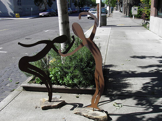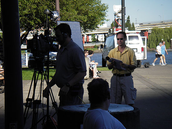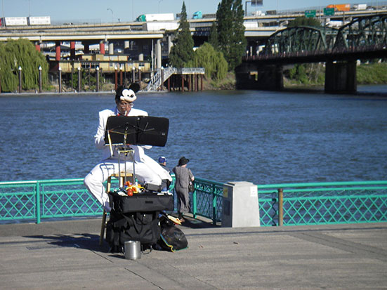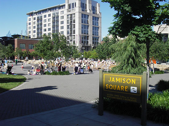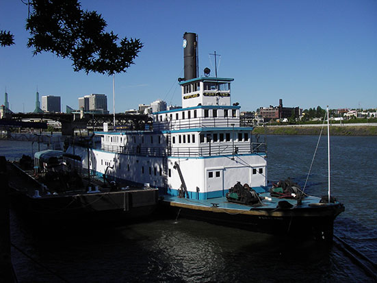 Hin zum Fluss Willamette. Auf dem eher braunen Wasser fährt manch einer sein Boot aus. Auch ein paar Jet-Skis zischten herum. Aufm Uferweg waren meist Jogger und Radler unterwegs. Ganz schön sportlich! Gute Atmosphäre am frühen Abend.