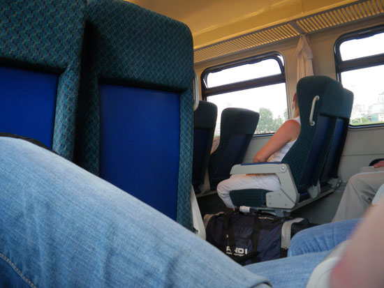 Schlaflos startete der Tag eben etwas müde. Nach 5 ging ich zum Bahnhof, der Zug nach Leipzig war für 5:30 geplant. In Leipzig kaufte ich mir n der Apotheke ’nen Zungen-Cleaner, den ich schon wieder vergessen hatte = €2,82.