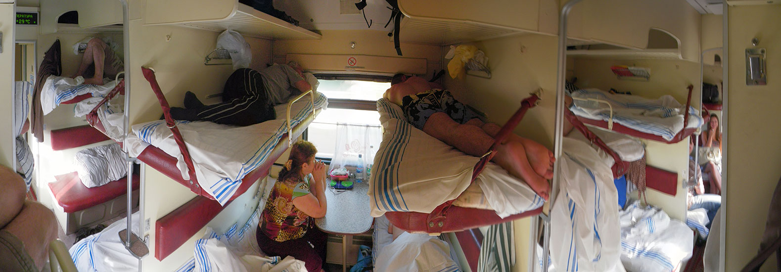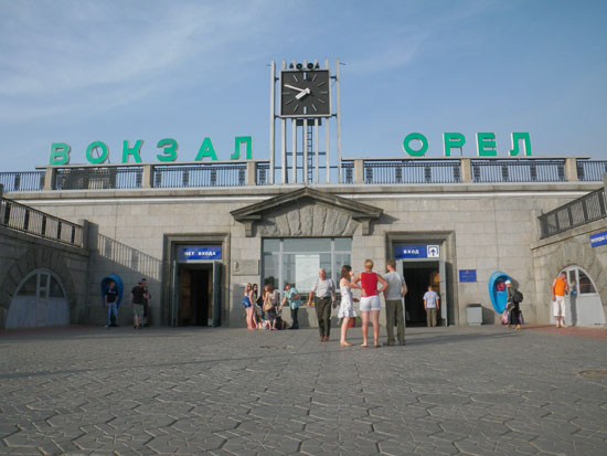 Mein Ticket war für den Schlafzug nach Donezk – 36h. Ich dachte erst, ich hätte nur einen kleinen unbequemen Sitzplatz aber der Tischnachbar brachte mit Bettzeug. Als ich dann einfach zu müde war, legte ich mich auf meine Liege und döste so einen guten Teil der 5h Start vor mich hin. Die Hitze war auch nicht ohne – 28-29 °C zeigte es an. Viele Leute lagen da und dann war ich 19:45 in Orel.