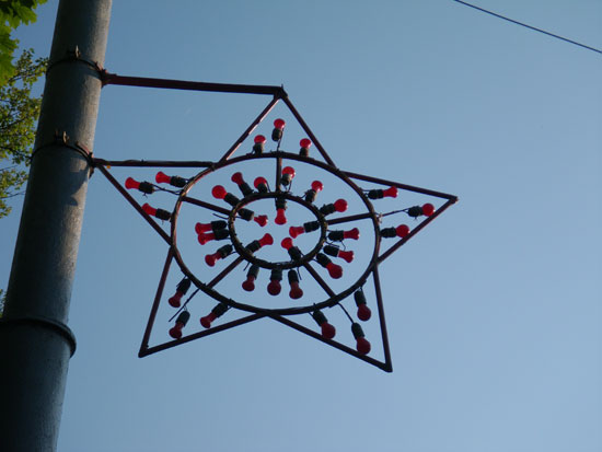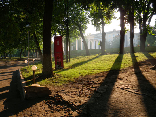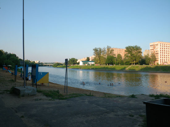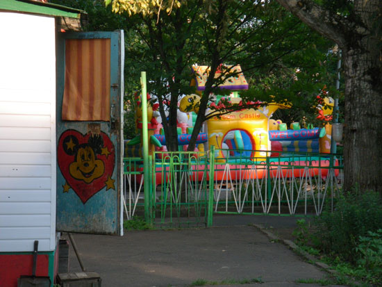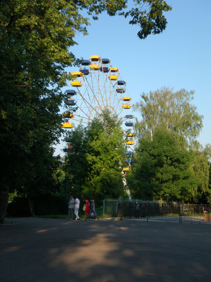 Nach 7 ging ich vor die Tür für ein paar Photos. Die Hummeln summen herum, im Park tanzten und sangen die Leute. Auch eine Bauchtänzerin zeigte, was sie hatte – gute Unterhaltung. Ich lief weiter durch die Amüsiermaschinen und ging schließlich runter zum Wasser. Da war die Batterie alle, ich schlenderte wieder nach Hause. Hier in Orel läuft doch bissel was am Wochenende. Die Leute sind unterwegs.