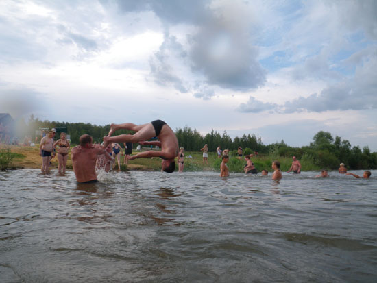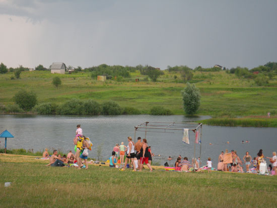 Die Fahrt zum See dauerte etwa 15′, es zogen ein paar Wolken auf. Das Wasser war super und ich freute mich, endlich mal in diesem Sommer zu schwimmen. Die Mutter kaufte mir was zu essen, „Blog“ oder so und dann noch Dim Sum. Angebote zum Zahlen wurden ausgeschlagen. Das schmeckte alles suepr. Nochmal schwimmen, paar Plaudereien später und einen Regenguss unter dem Zeltdach wurden wir wieder zurück gefahren.