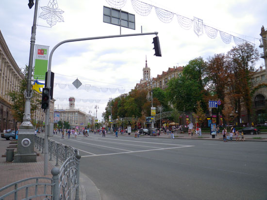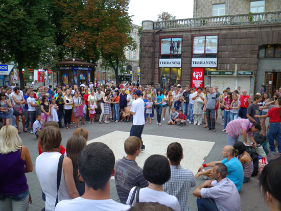 Ich sah das „Golden Gate“ das erste Mal. Das letzte Mal hier war es noch vom Baugerüst umzäunt. Unten den auf dem Kretschachik liefen viele Leute umher. Während ich auf eine Bekannte wartete, schauet ich den Breakdancern zu. In Kiev ist viel los.