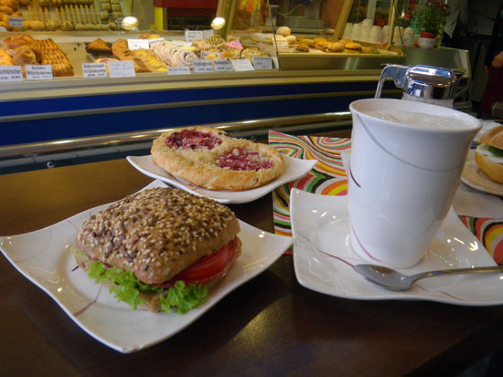 Leicht verspätetes Auschecken, Frühstück wie gestern in dem Backladen an der Straßenbahn. Wir spazierten weiter, ich wollte noch Cash holen. Da schaute ich in meinen Rucksack und fand den Brustbeutel mit meinen ec-Karten nicht!