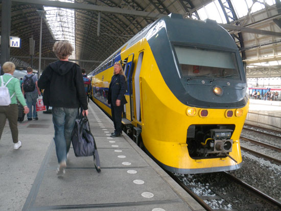 Ich schnappte mir ein Taxi und fuhr zum Bahnhof. Der Zug kam und ich saß drin. Erst als er losfuhr schaute ich nahc, ja die Brusttasche war da. Alles easy auch auf der Fahrt nach Amsterdam. Das Ticket war ja mit ca. €14 im Vorauskauf + Bahncard spottbillig. Im ICE ging die Fahrt schnell – oft zu schnell, so dass der Zug manchmal warten musste.