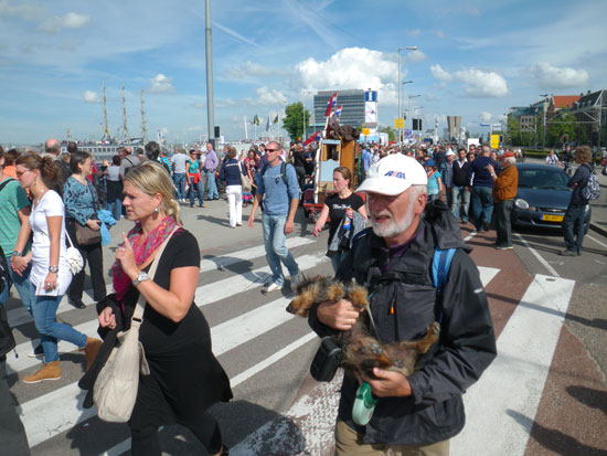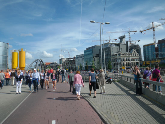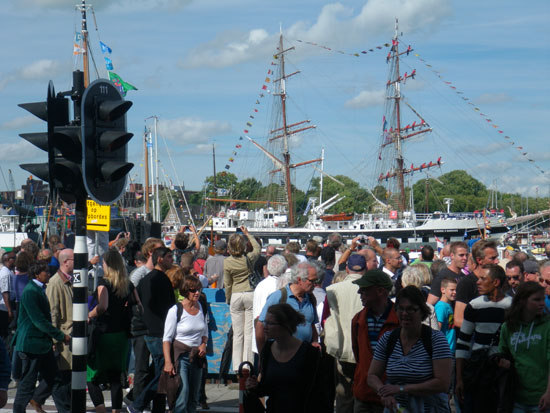 In Amsterdam nahm ich den flaschen Nord-Ausgang, sah so aber, dass hier ein Hafenfest – die Sail 2010 ist. Viele Leute.
