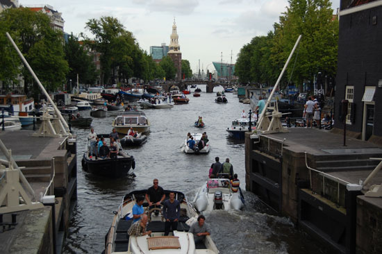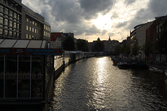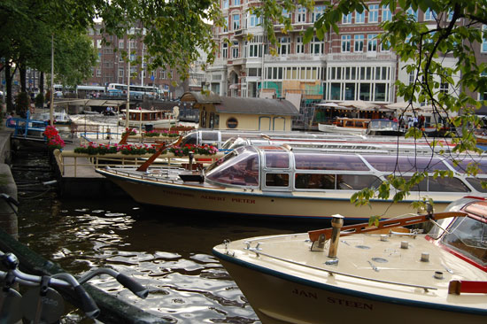 Noch vor 6 ging ich mit der Camera raus und knipste mich durch die Stadt. Amsterdam ist schön und jetzt mit den vielen Booten in den Grachten besonders nett. Das Wetter blieb trocken. Ich kaufte mir eine 3fach Steckdose und dann noch Zahnpasta, die ich auch nicht mithatte. Halb 9 war ich wieder im Hostel, sortierte Bilder und arbeitete ein wenig.