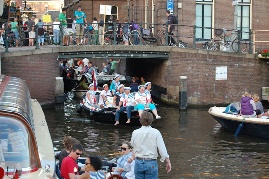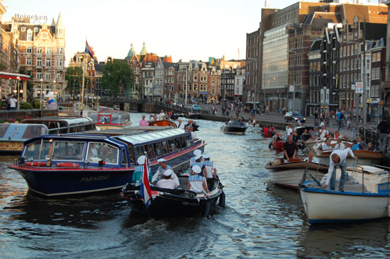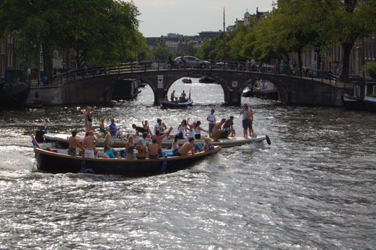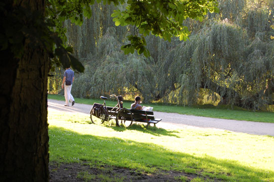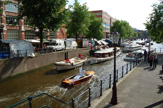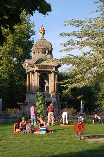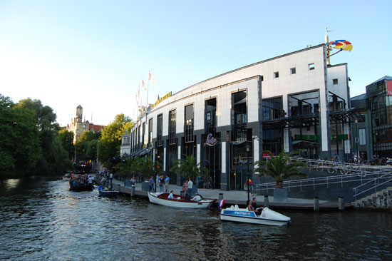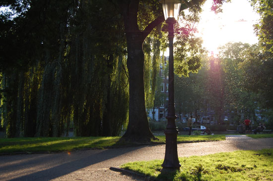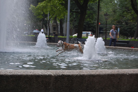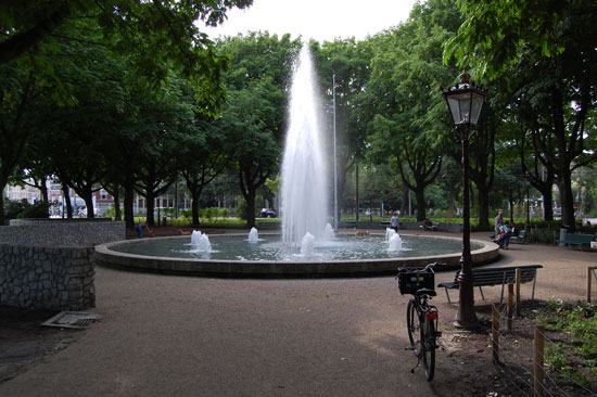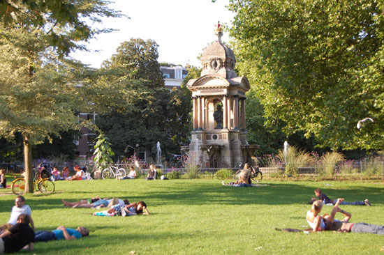 Mit dem Stadtplan ging’s erst durch’s Rotlichtviertel. Viele Leute heute zum Freitag unterwegs – auf den Straßen und in den Kanälen. In einem Park setzte ich mich hin und döste eine Stunde vor mich hin. Hunde hatten Spaß im Brunnen.