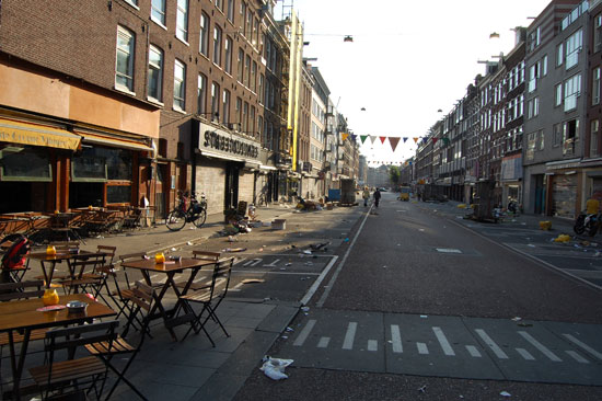 Die Musik hier war echt hardcore. Ich hatte was leichteres erwartet aber das ging voll ab. Ich denke mal, mit XTC wäre das alles super gewesen aber ich war nüchtern und hatte mittelmäßig Spaß. Ich tanzte vor mich hin und sah vor mir auf der Tanze ’nen €50 schein liegen. Den hob ich auf, wem der wohl gehörte? Fragen brauche ich nicht, sowas würde ja jeden gehören also steckte ich ihn ein. So war das dann doch ein billiger Abend. Auf der Toilette zogen sich ein paar Leute Koks rein, ist eben Amsterdam-Style. Ich hatte ein kleines Bier und ein Toc Wasser (beides je €2,50).