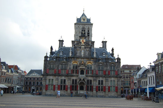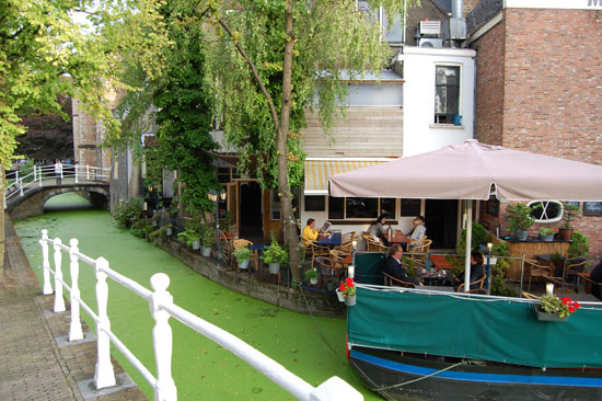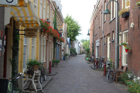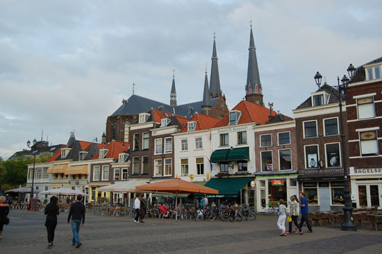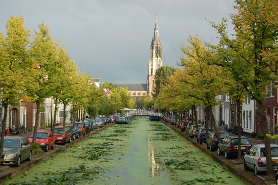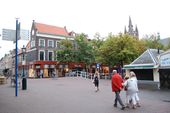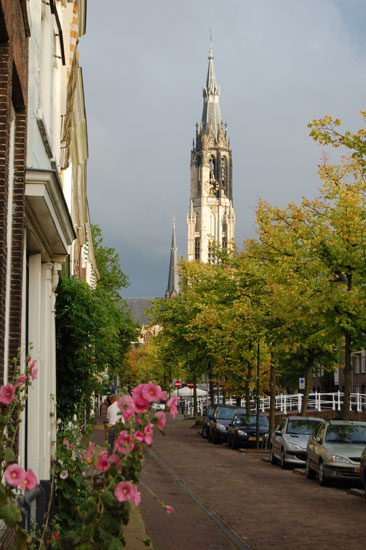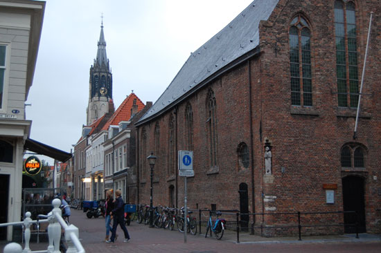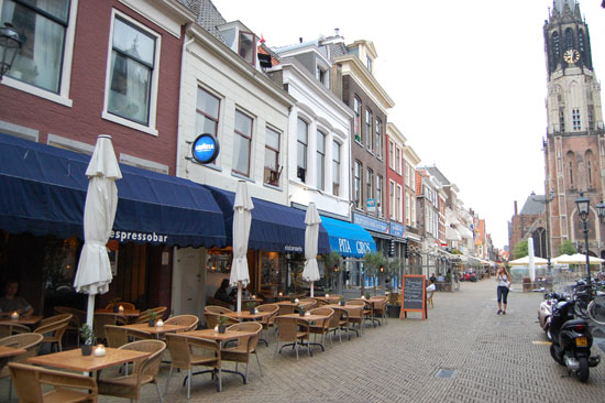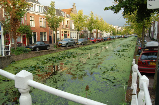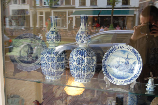 Ein kurzer Rundgang durch Delft dann nach 19:00. Ein schönes kleines Städtchen. Die Häuser schienen oft um 1600 gebaut – die Kanäle werden wohl nicht so häufig genutzt – viele Algen und Seerosen bedeckten das Wasser. Ganz ruhig und still zum Sonntag. Das berühmte Porzellan gibt’s in vielen Läden – heute eben geschlossen.