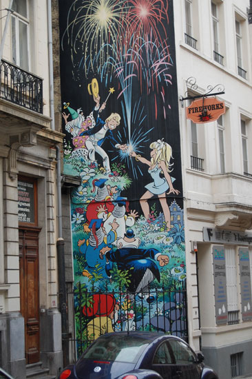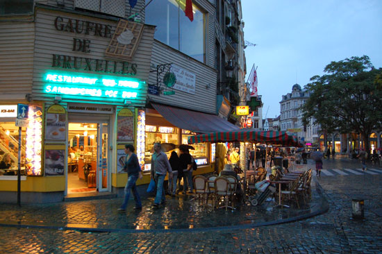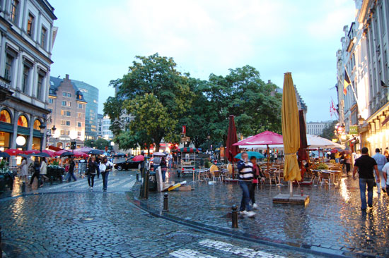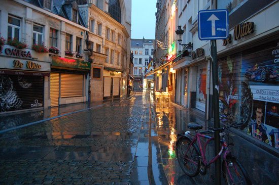 Inzwischen schon 18:30. Die Runde ging über die Neue Straße bis zum Großen Markt, Manaken Pis und dann mit der Metro zum Park und dann wieder zurück. So sah ich mal was anderes als noch vor reichlich 3 Jahren das erste Mal hier. Ich hatte Knast, kaufte mir ein paar Fritten, die super schmeckten. Der Regen wartete ich unter einem Schirm mit meinem Pommes Frites Special ab. Dann huschte ich zur nächsten Metro und war endlich wieder zu Hause.