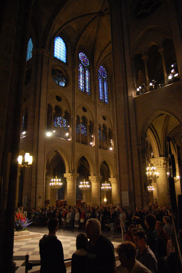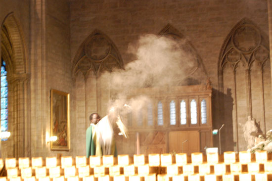 Was machen an so einem bewölkten Tag? Ich fuhr nach Notre Dame, ging in die Kirche. Gerade wurde eine Messe abgehalten. Es roch nach Weihrauch, die Orgel posaunte heftige Töne.