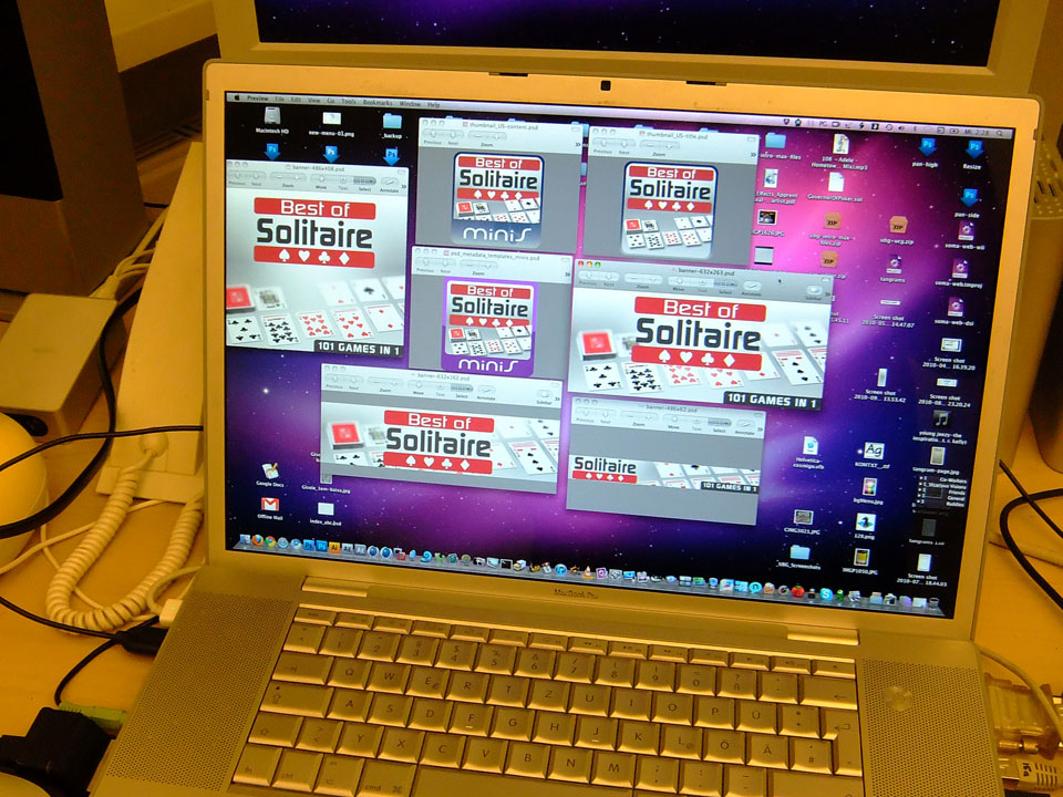 Abends kamen die PSP Banner dran. Die ganzen Infos zur Größe und Nutzung sind über verschiedene Dokumente verteilt. Mir wurde bis zum Ende nicht klar, welche Version nun eigentlich für was gedacht war. Ich machte in 2 Stunden eine Handvoll verschiedener Versionen und war dann ganz zufrieden. Allerdings übersah ich, dass in der rechten unteren Ecke oft das Preisschild klebt.