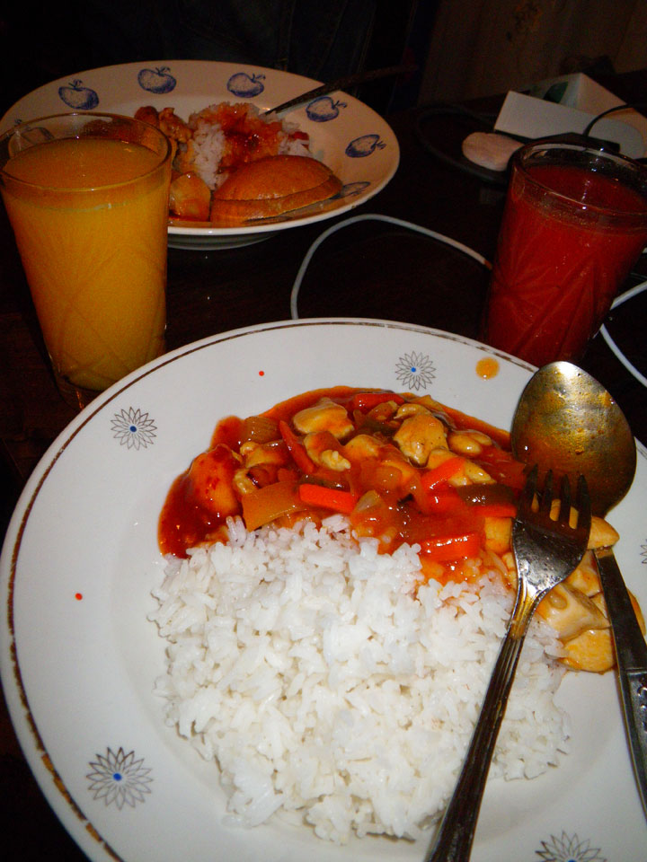 Punkt 7 waren wir wieder zu Hause. Die Vermieterin samt Tochter wartete schon draußen und übergab uns den Schlüssel. Alles lustig trallala. Es gab Reis mit Hühnchen und Uncle Ben’s asiatisch süß-saurer Soße. Das schmeckte und alles wieder im Lot.