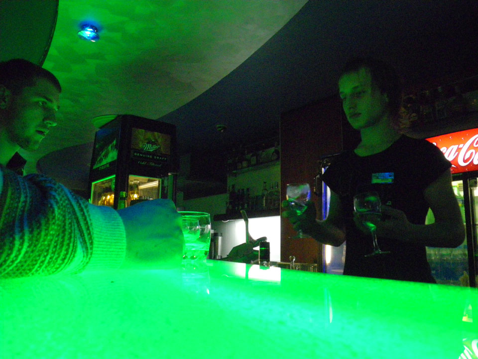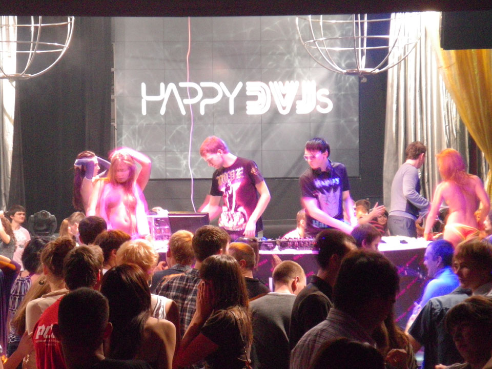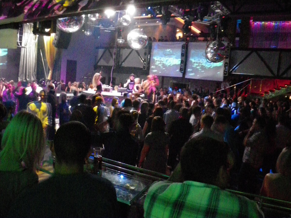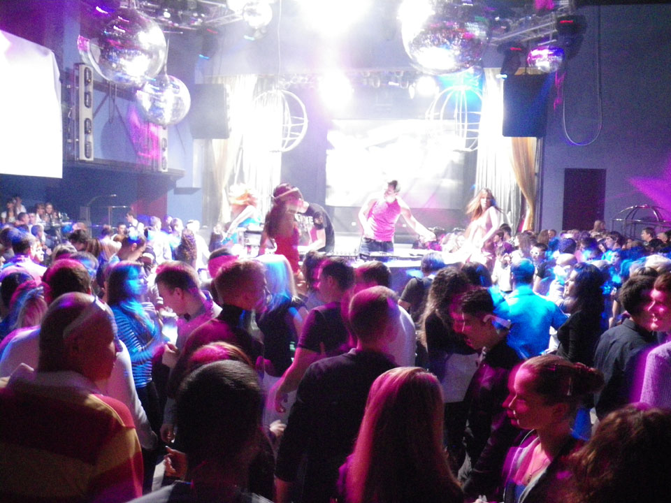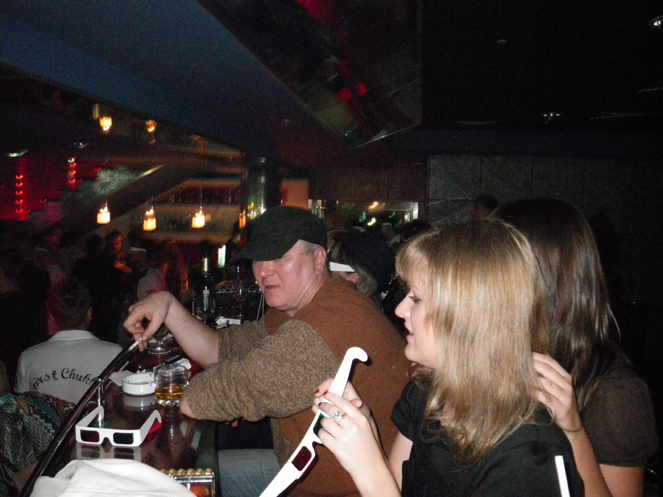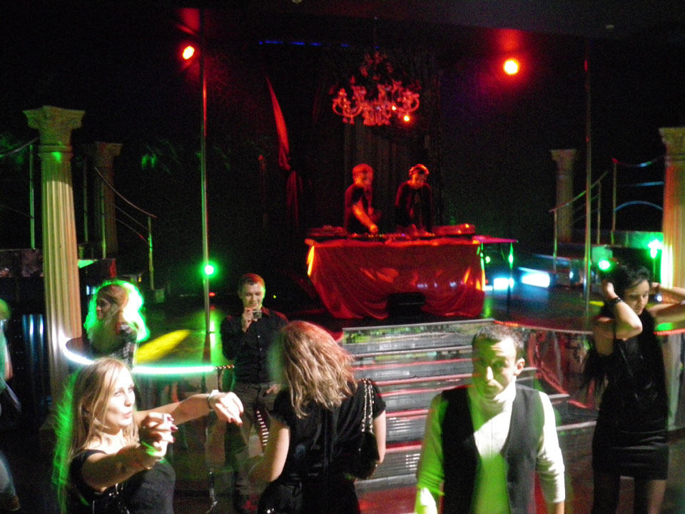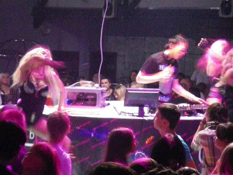 Im Chassie waren massig Leute. Wir mussten ein paar Minuten warten. Drinnen super Musik, die Haupt-DJs später waren nicht ganz so dolle. Ein VJ spielte 3D Clips ab, viele Leute hatten Anaglyph Papp-Brillen bekommen. Ich schaute auch mal durch, die Effekte waren nicht so toll. Interessant war aber, dass viele PC Demos gespielt wurden, ich erkannte da einiges – samt Greetings zu Haujobb, Andromeda usw..