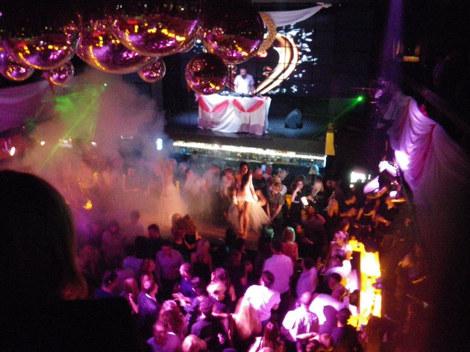 Der Club (Dynamo-Lux) füllte sich – heute war irgendeine Hochzeits Themen-Party. Alle Leute in weiß, schwarz oder grau. Mir wurde in meinem Pulli zu warm und ich war erst der einzige grüne T-Shirt Träger dort. Die Party wurde besser und ich hatte eine gute Zeit.