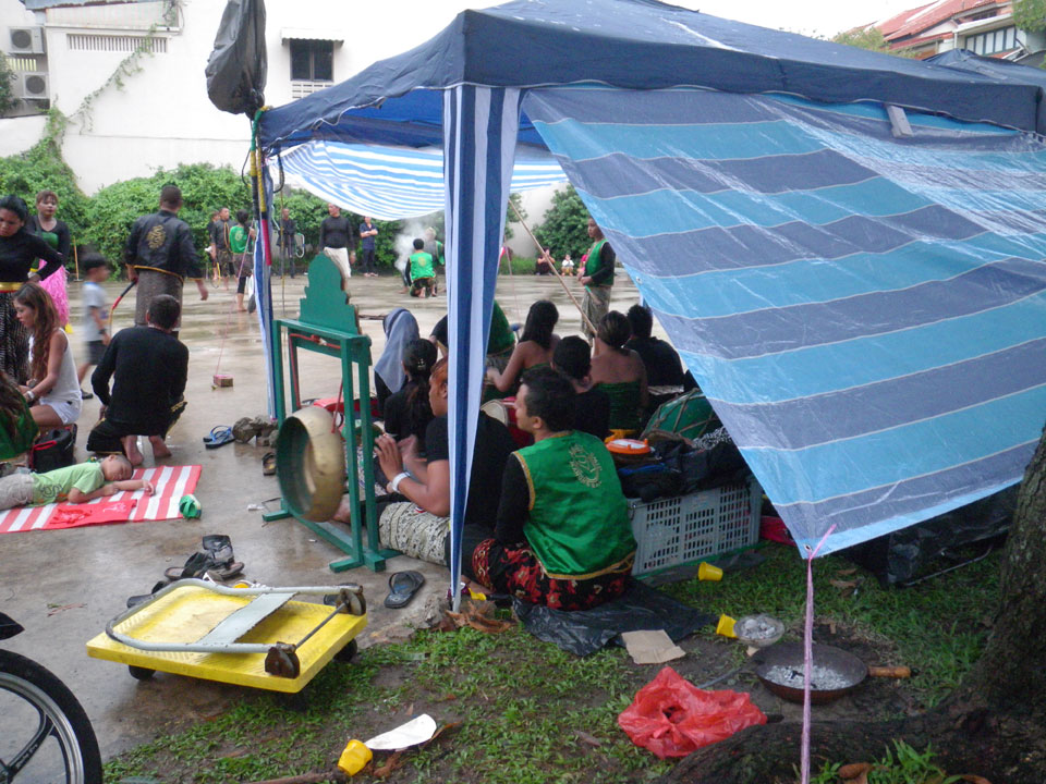 Ich fühlte mich nach dem Sport nun wohl, trotz wenig Schlaf, ging dann wieder was essen. Vorher schaute ich am Community Platz vorbei, wovon den ganzen Tag die Musik kam. Indonesische Mädchen in Trance galoppierten als Pferde. Die waren teilweise sehr erschöpft – kein Wunder, wie lange das ging. Ist schon cool, so viele Kulturen hier.