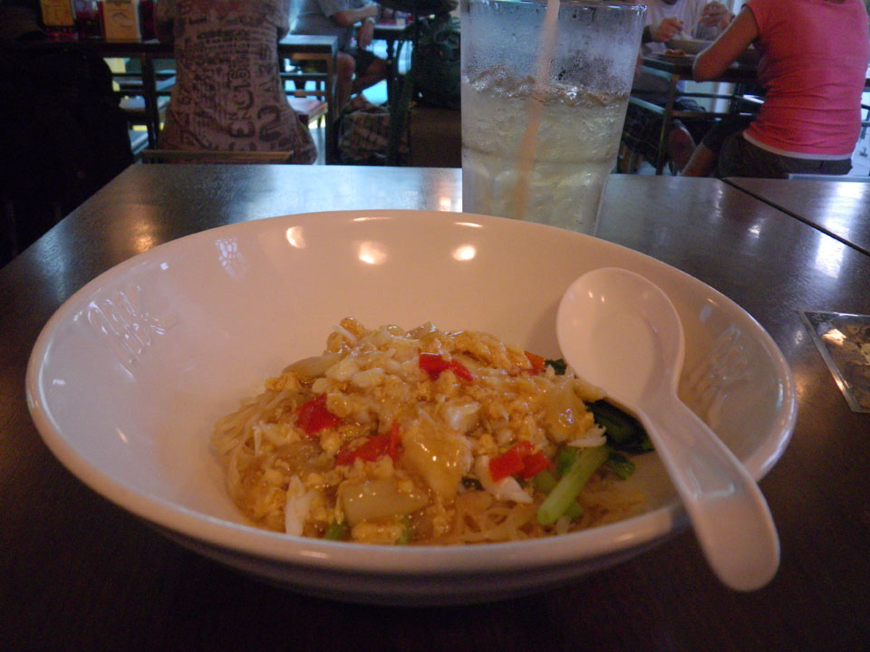 Ich holte mir bei Hong Kong Noodle was zu essen und spaziere von Asok zurück in’s Hostel. Heute abend soll wieder ein Pub Crawl stattfinden. Mal sehen. Dann ging ich nochmal los, holte mir ein Papierbuch über die „Love“-Industrie hier – THB 99. Beim Essensmarkt traf ich ein paar Leute, redete mit denen und wartete sehr lange auf mein Essen, weil ich bei diversen Leuten bestellte, die mich nicht verstanden oder eigentlich nicht für die Bestellung zuständig waren. Normal Chicken, Basil Leaf, Rice ist immer gut.