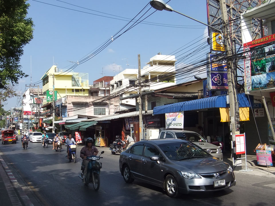 Ein paar Sachen im Internet und ich erfuhr, dass ich zu Doi Suthep, dem Bergtempel hier, vom Nordgate aus für THB 50 erreichen könnte. Die Taxis wollten aber alle 400 und 500 Baht für mich alleine. Der Preis war wohl für ein volles Taxi mit 10 Personen gedacht. Ein Tuktuk brachte mich zum Chiang Mai Zoo, wo die Taxis zum Berg starteten. Ich wartete eine Weile, ein Thailändischer Backbacker auch – und wir blieben die einzigen. So war das nix mit den THB 80 für den Roundtrip zum Zoo.