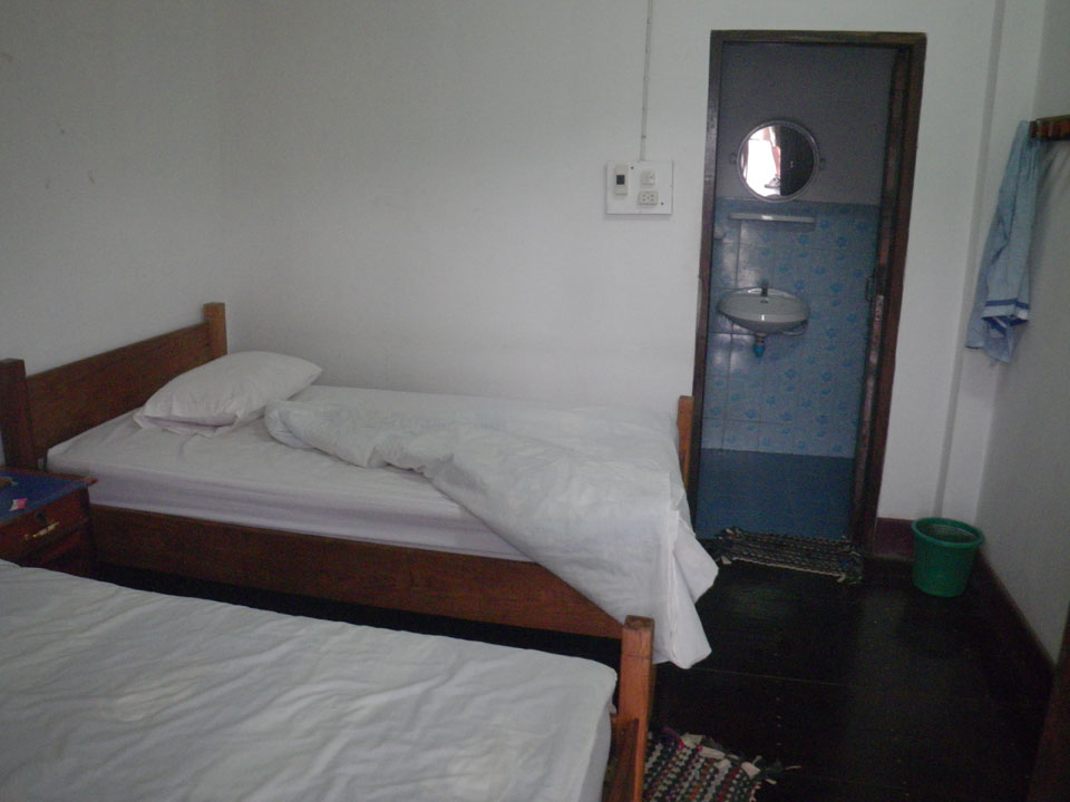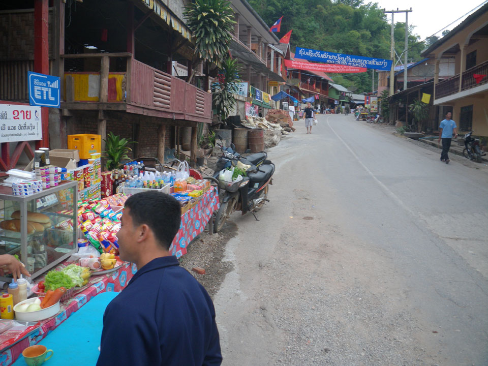 Morgens klappte wieder alles wie am Schnürchen. Ich bezahlte das Zimmer (40.000 = €4), hatte Frühstück (15.000) und kaufte noch zwei Sandwiches (zusammen 20.000). Die Umrechnung fällt leicht 1€ = 10.000 KIP. Der Zimmerpreis ist im Verhältnis sehr günstig hier – quasi 4 belegte Brote.