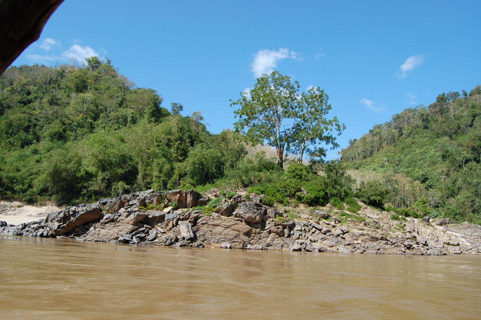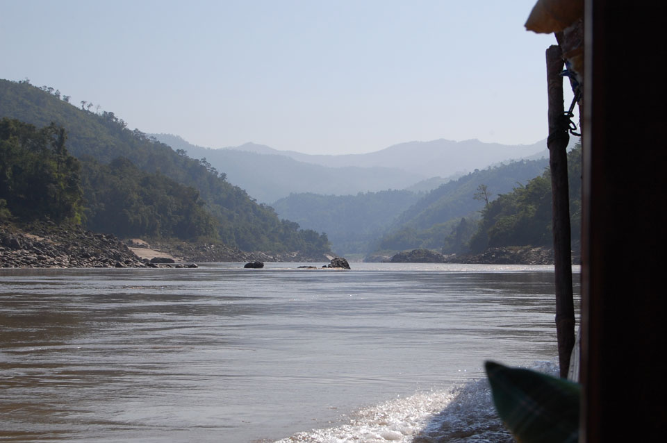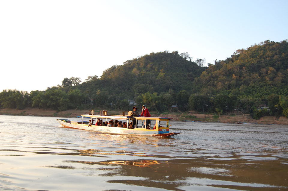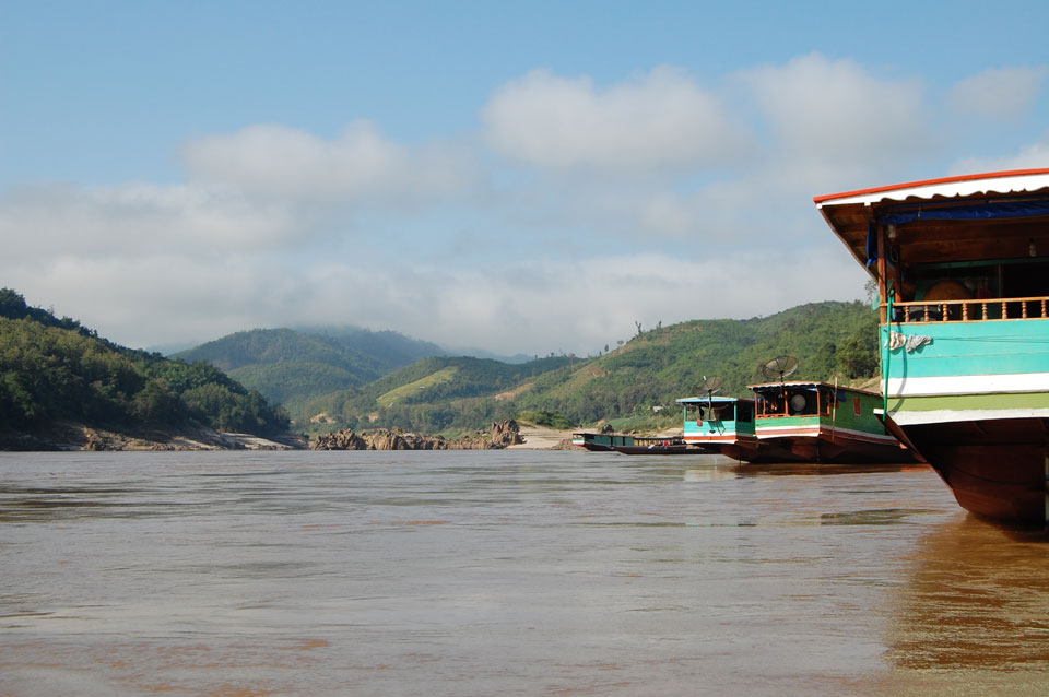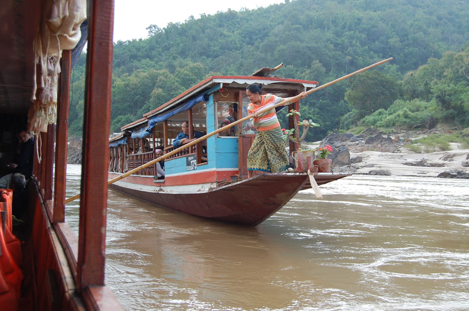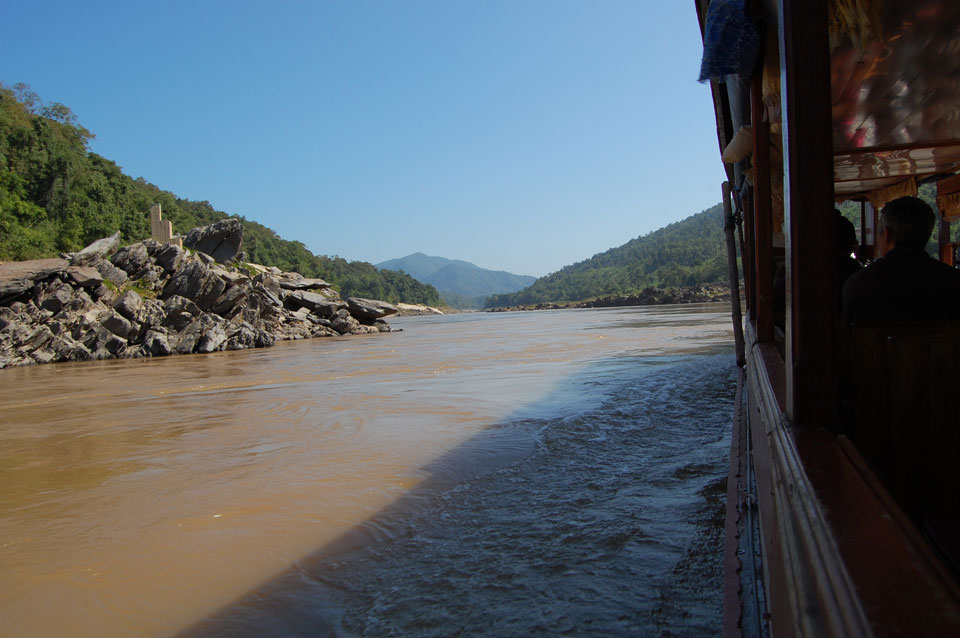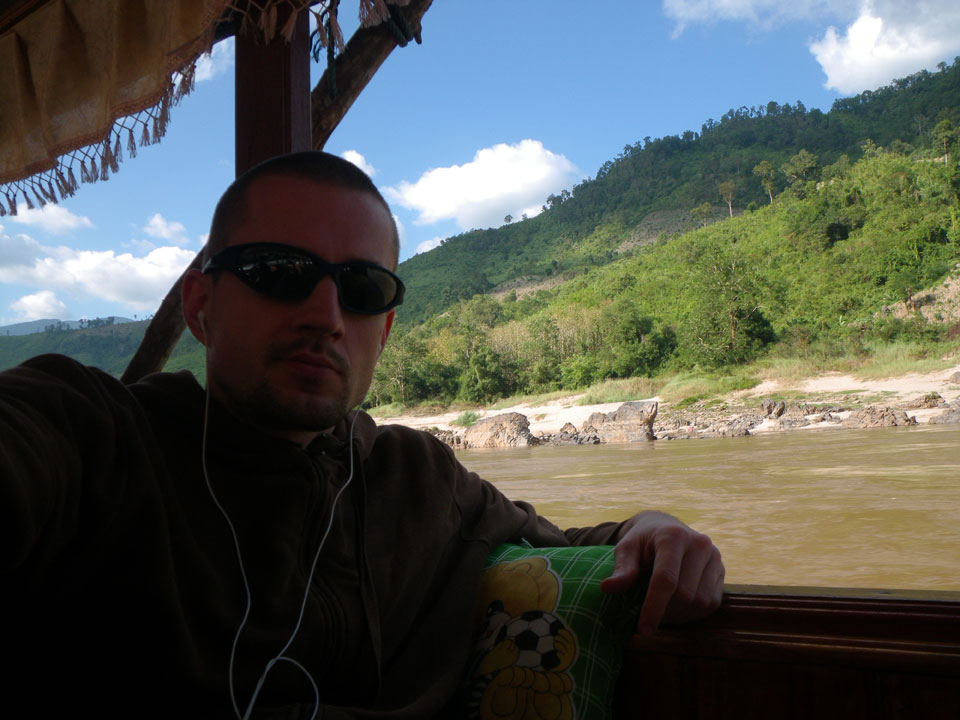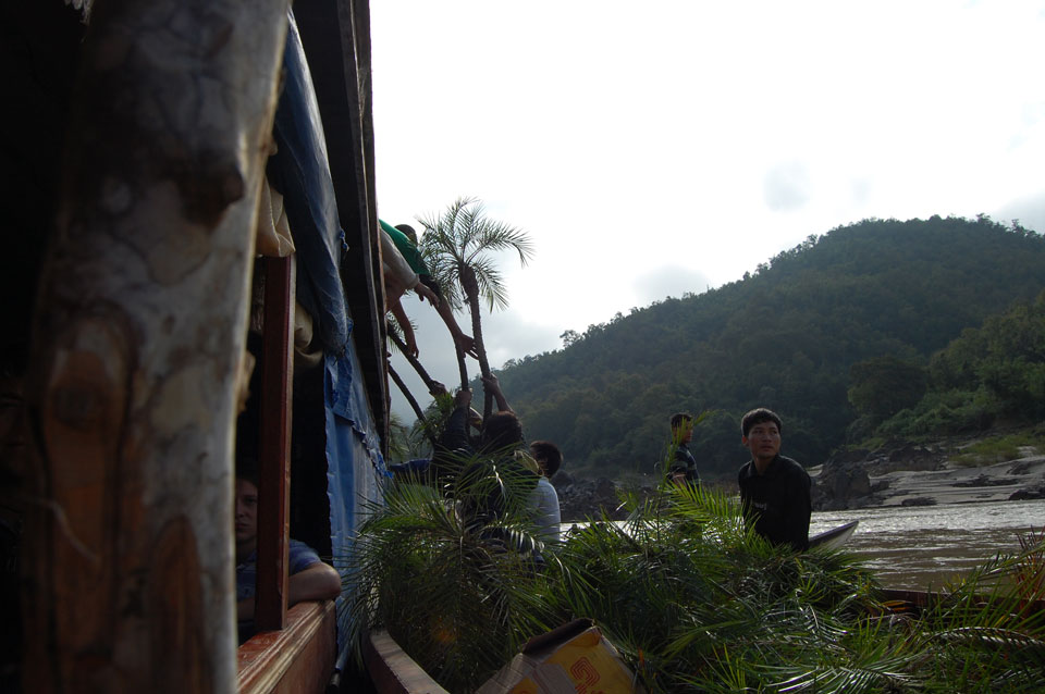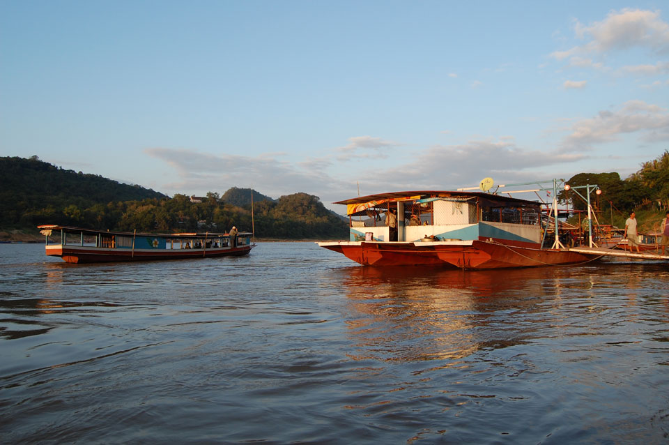 Ich genoss die Fahrt auf dem Mekong durch eine wunderbare Landschaft. Das war heute wieder eine nette Art zu reisen. An einem Halt wollten Dorfbewohner Sachen verkaufen – Stoffe und ein paar tote Waschbären? Mein Proviant war auch genau richtig – die restlichen Bananen von gestern verputzte ich auch noch. Irgendwie war ich dann doch etwas fertig – bissel Kopfschmerzen und müde.