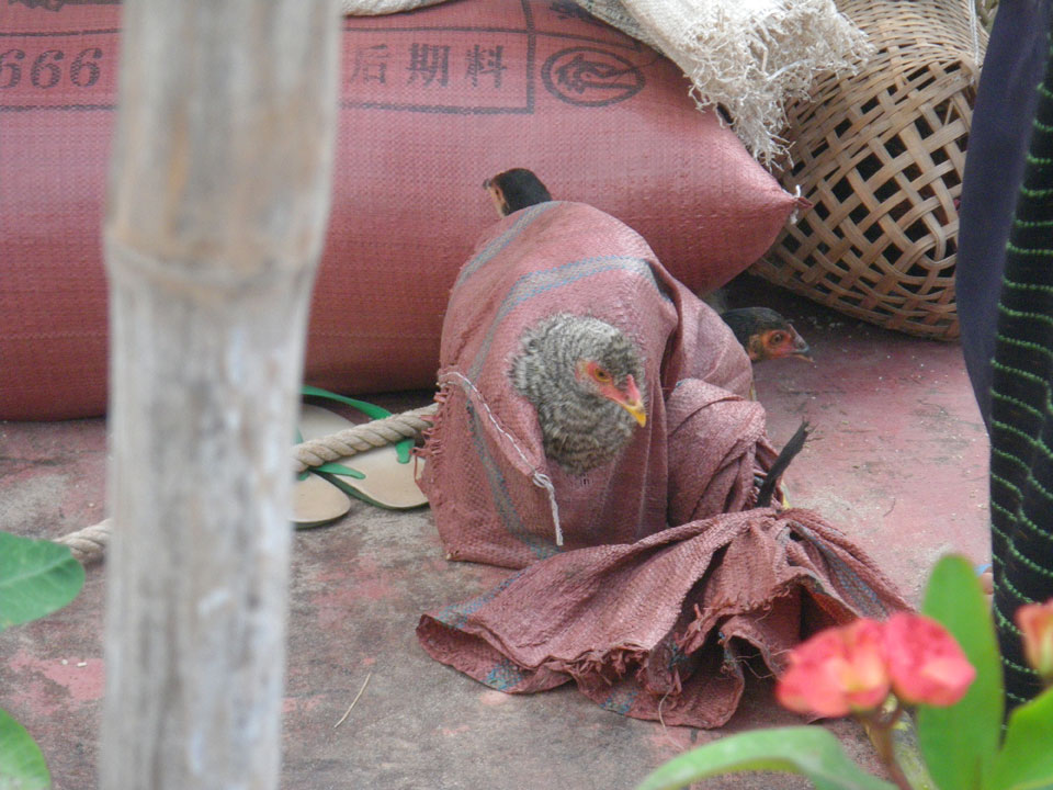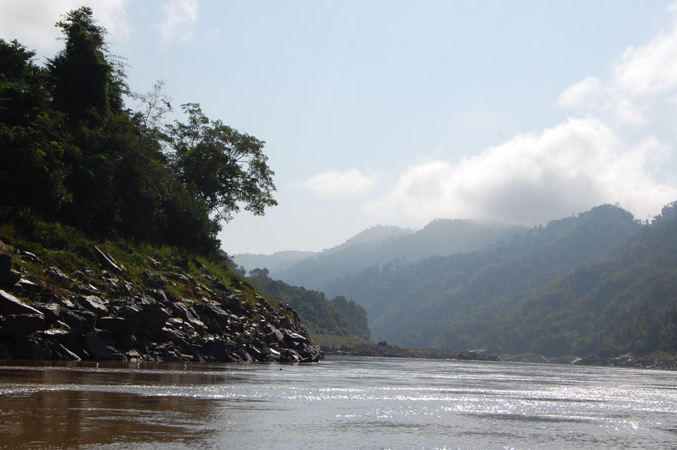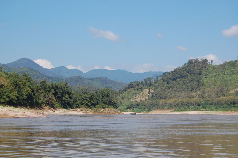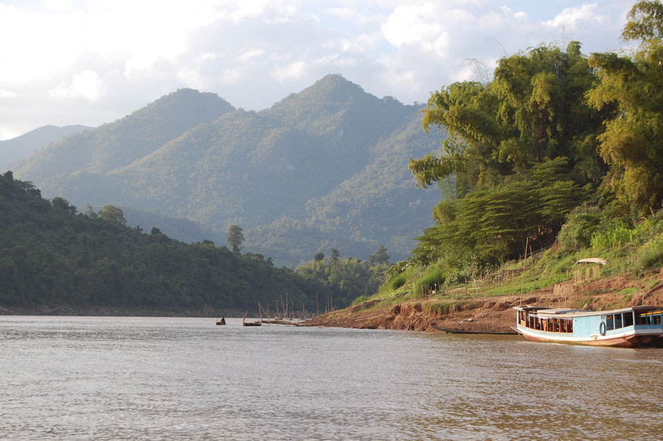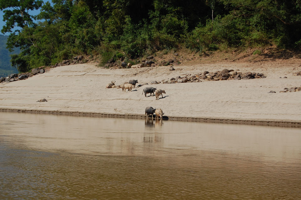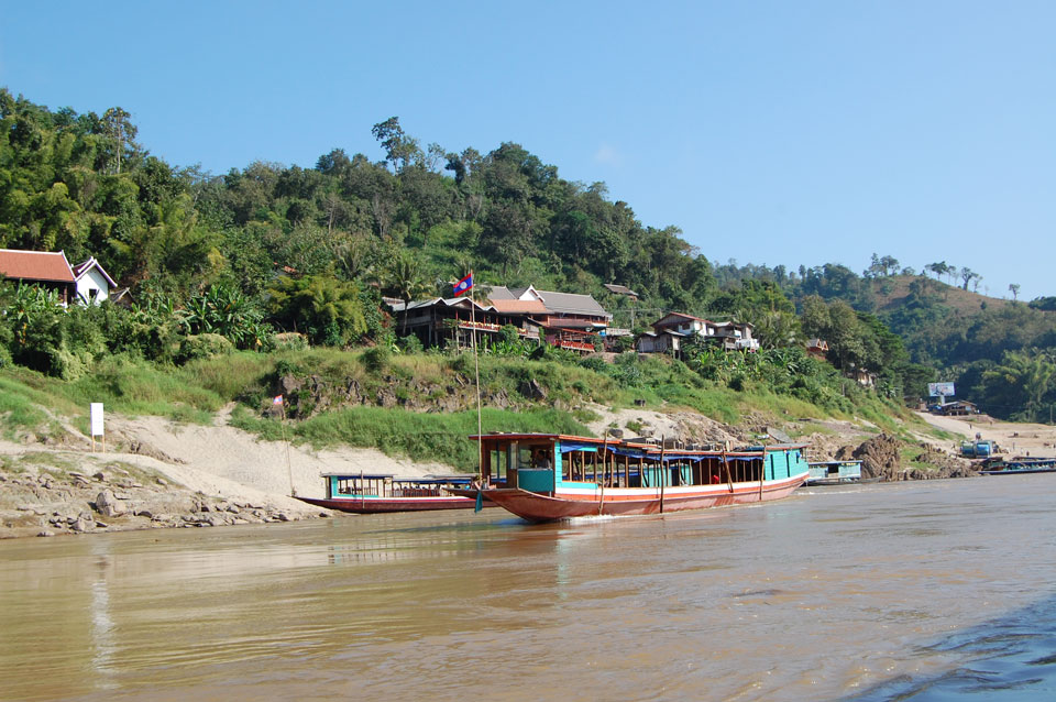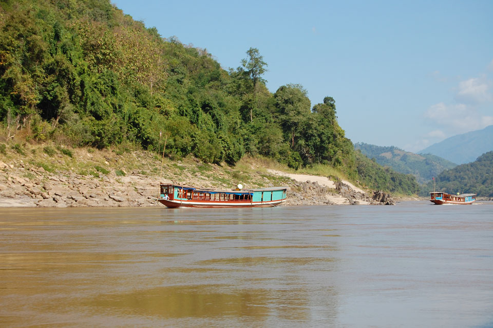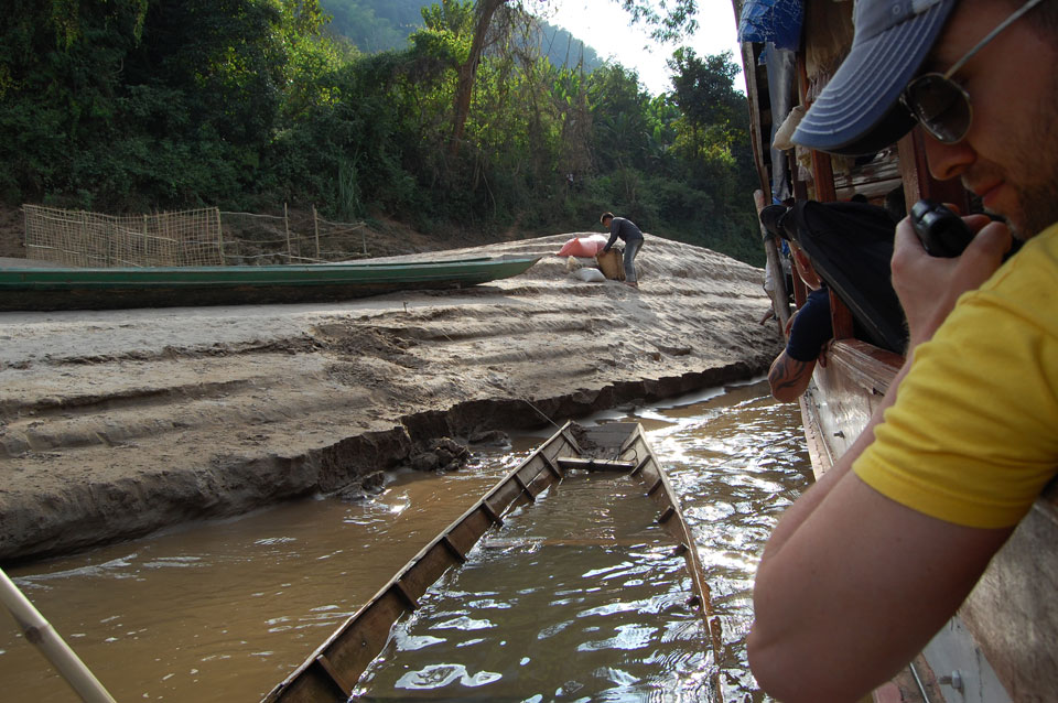 Ich genoss die Fahrt auf dem Mekong durch eine wunderbare Landschaft. Das war heute wieder eine nette Art zu reisen. An einem Halt wollten Dorfbewohner Sachen verkaufen – Stoffe und ein paar tote Waschbären? Mein Proviant war auch genau richtig – die restlichen Bananen von gestern verputzte ich auch noch. Irgendwie war ich dann doch etwas fertig – bissel Kopfschmerzen und müde.