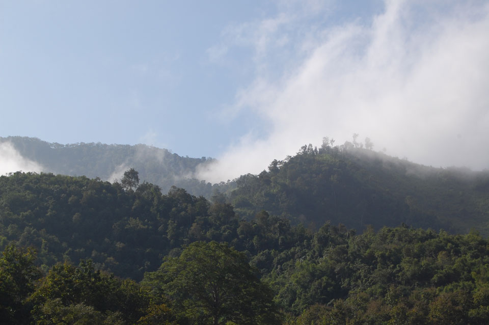 Ein wunderbarer Morgen mit Nebel in den Bergen. Es war noch frisch. Ich war noch müde und nickte ein paar Mal weg. Sonst war ich den ganzen Tag nicht in Redestimmung und lerne momentan kaum Leute kennen, auch weil ich die ganze Zeit Audiobooks höre. Buddha Geschichten passen aber in dieses buddhistisch-kommunistische Land. Dann fing ich „Snow Crash“ an. Diese Sci-Fi Geschichte ist der krasse Gegensatz zu Laos. Ich war unterhalten aber hörte auch für Stunden einfach dem Motor zu.
