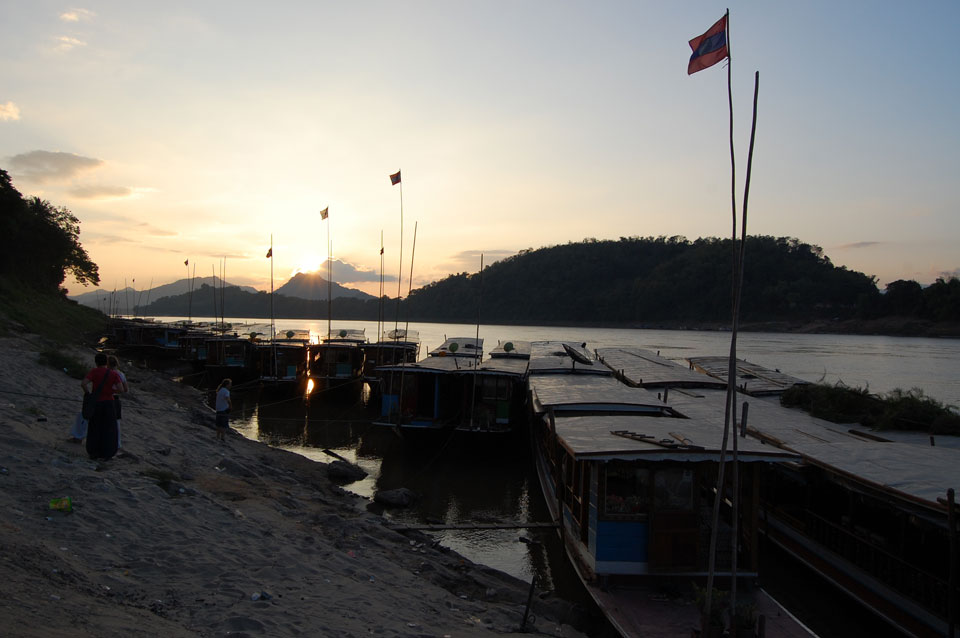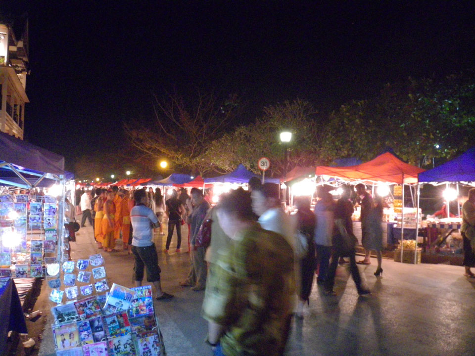 Um 17:00 kamen wir in Luang Prabang an. Alleine stiefelte ich los und wies wieder viele Gästehäuser ab. Ein paar gefielen mir schon ganz gut aber ich hatte schon was gebucht. Das war keine so gute Entscheidung denn ich fand das Ding einfach nicht, kein Local kannte es und selbt ein Tuktuk (10.000) fuhr erst mal bei Bekannten vorbei. Ein hochschwangere Frau sprach gutes Englisch und dann war’s doch gleich um die Ecke. Ich bekam mein Zimmer – klein aber mein.
