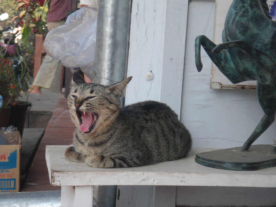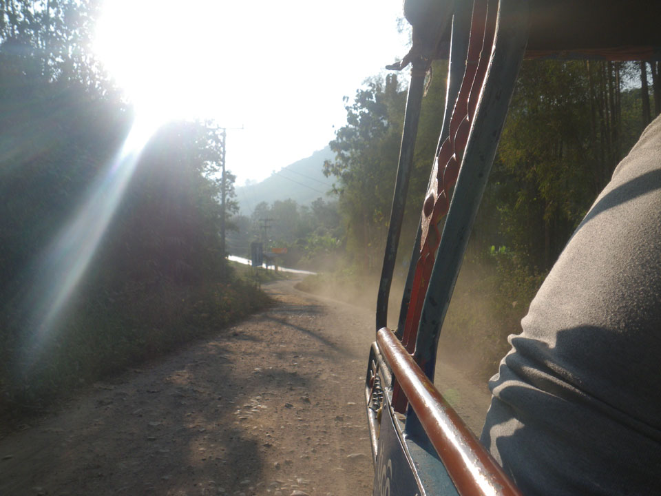 Der Tuktuk Fahrer wartete auch geduldig. Auf dem Rückweg wurde es wieder sehr kalt. Ich erfuhr, dass die beiden auf eine Erkältung im Nachtzug von Bangkok nach Chiang Mai bekamen. Das Phänomen der arktischen Klimaanlage war also nicht auf den Tageszug beschränkt. Jetzt froren wir auch und versuchten den Windschatten hinter’m Fahrerhäusel zu erwischen.